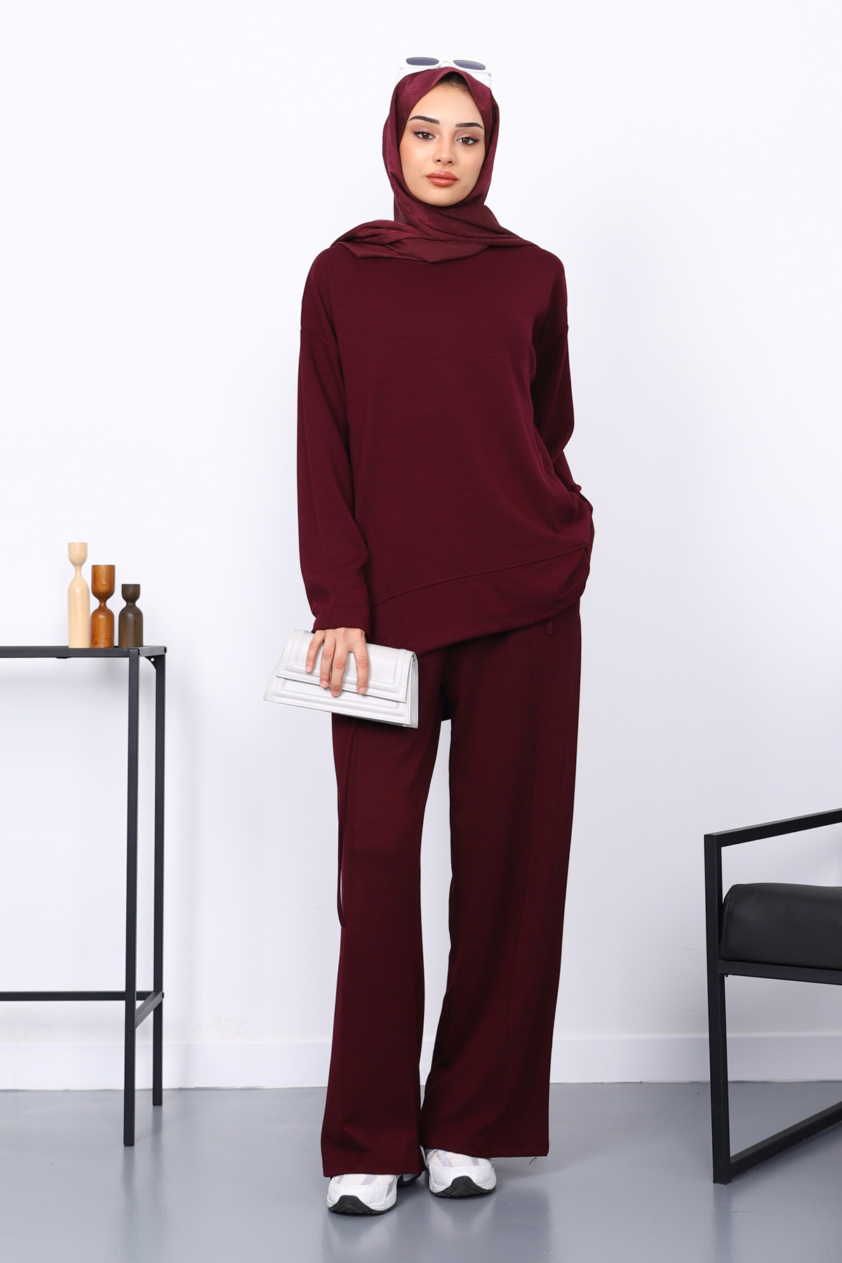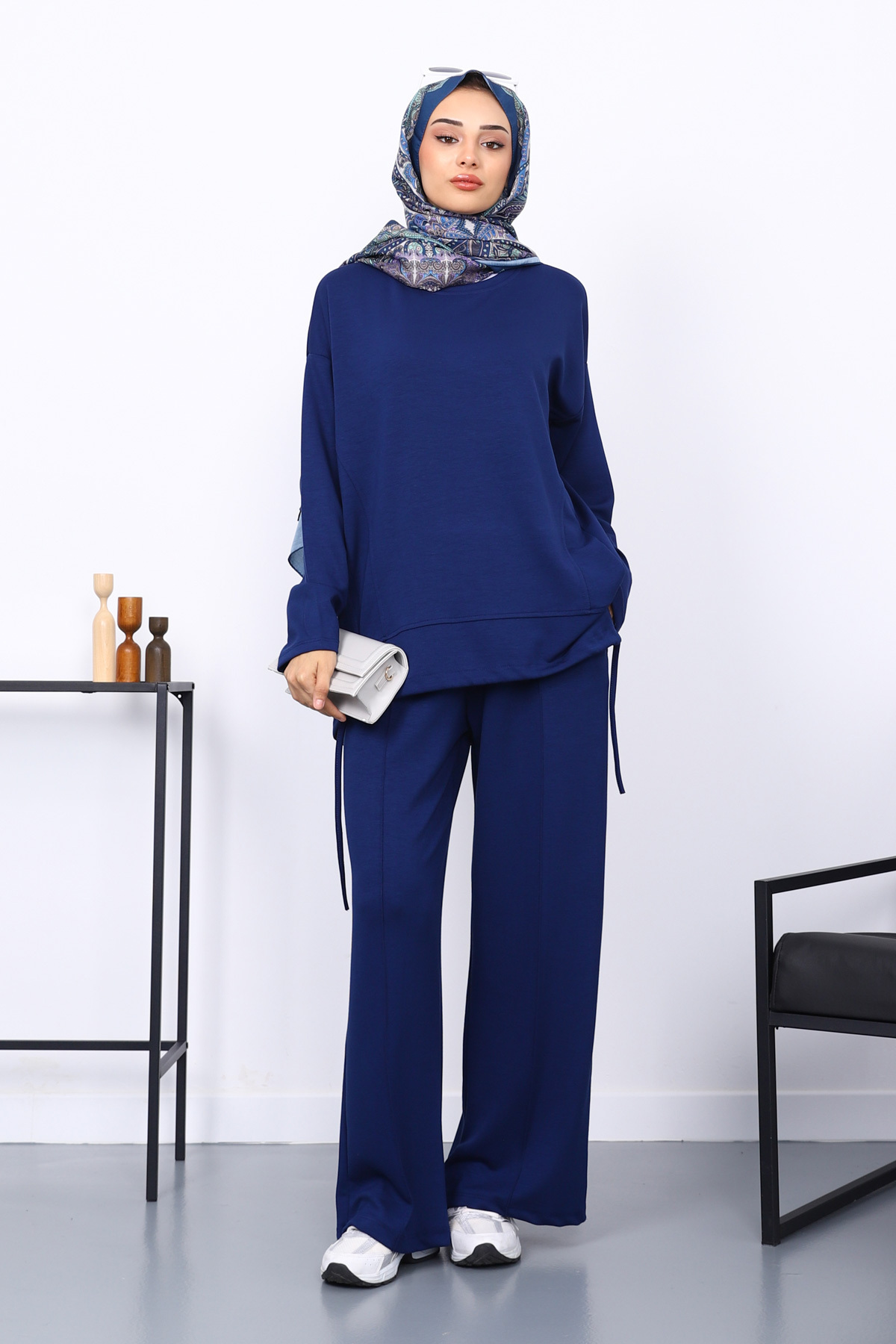 Lacivert Renk Bloklu Modal Tunik Pantolonlu Takım Lacivert Renk Bloklu Modal Tunik Pantolonlu Takım IMJ007499 XL