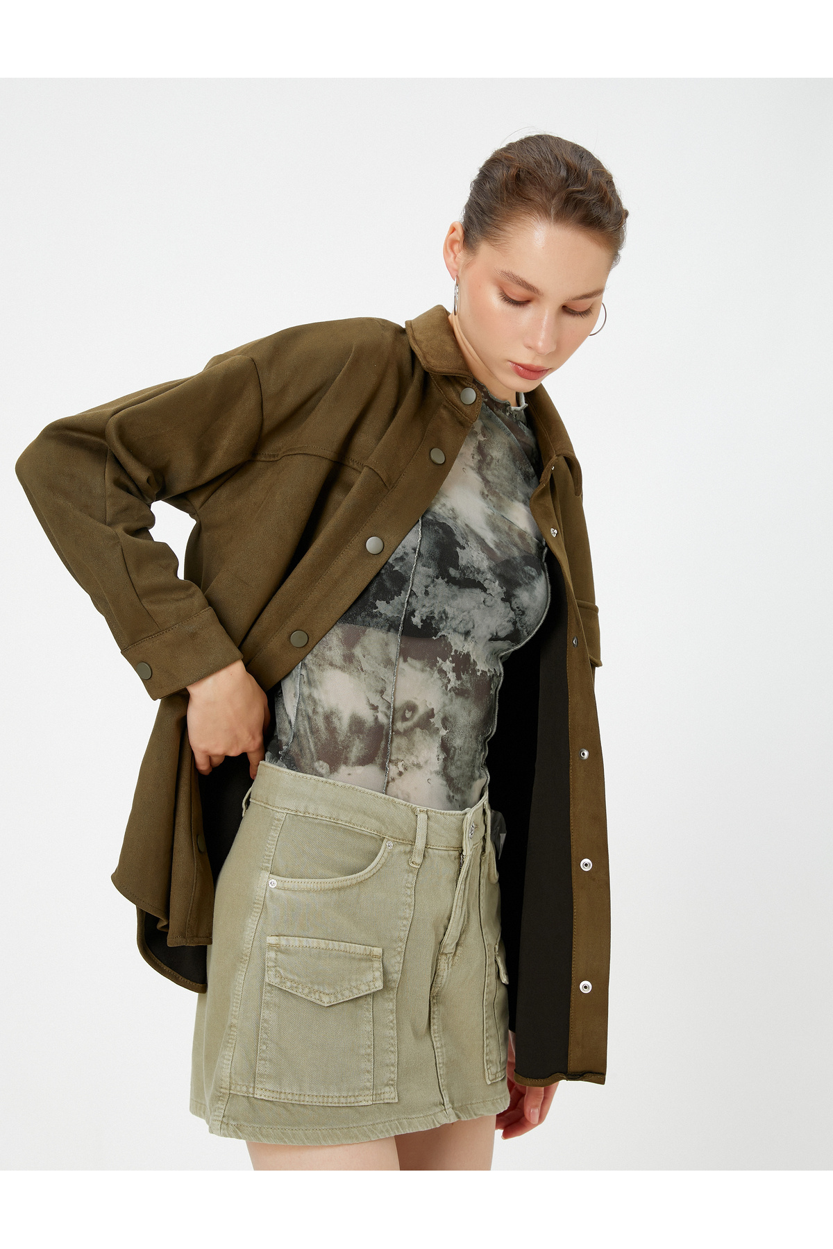 Klasik Yaka Cep Detaylı Oversize Düğmeli Süet Görünümlü Gömlek Ceket Klasik Yaka Cep Detaylı Oversize Düğmeli Süet Görünümlü Gömlek Ceket 6WAL60002IW 42