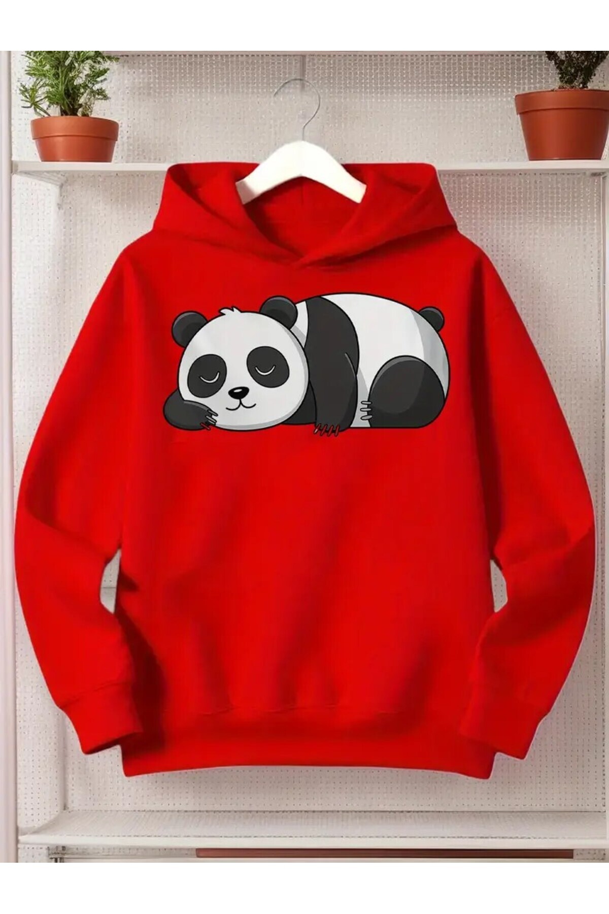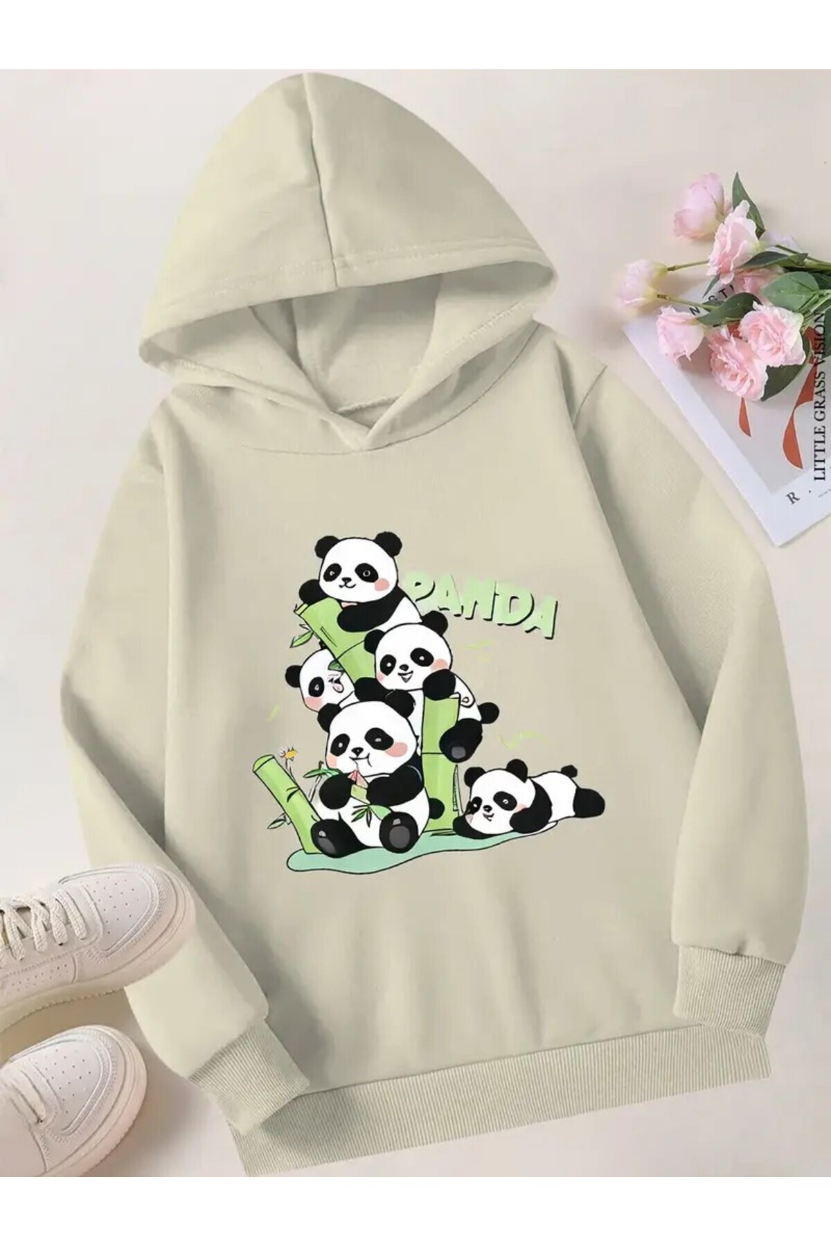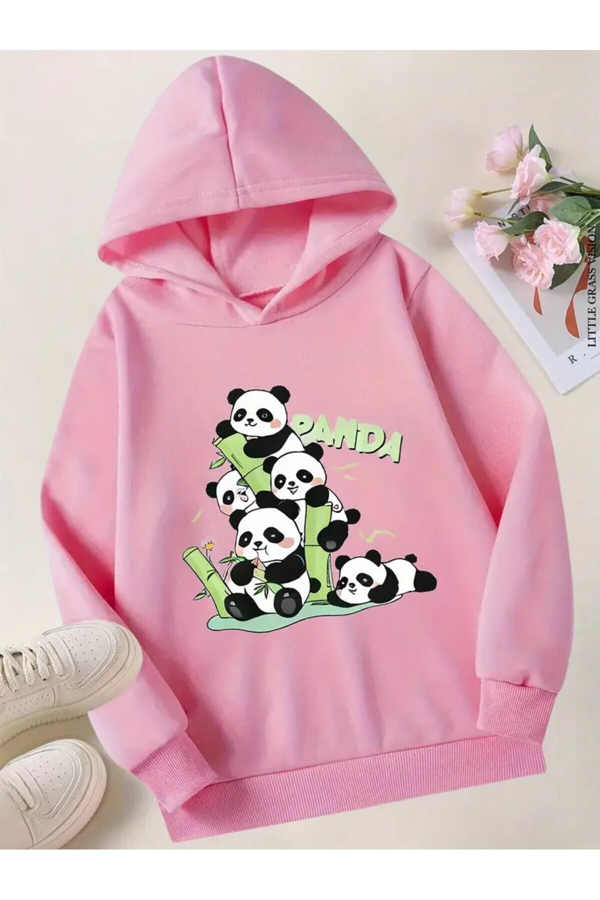 Sevimli Panda Baskılı Kapüşonlu Sweatshirt Sevimli Panda Baskılı Kapüşonlu Sweatshirt ohzhnakpnr5858yeayaer 11-12 Yaş
