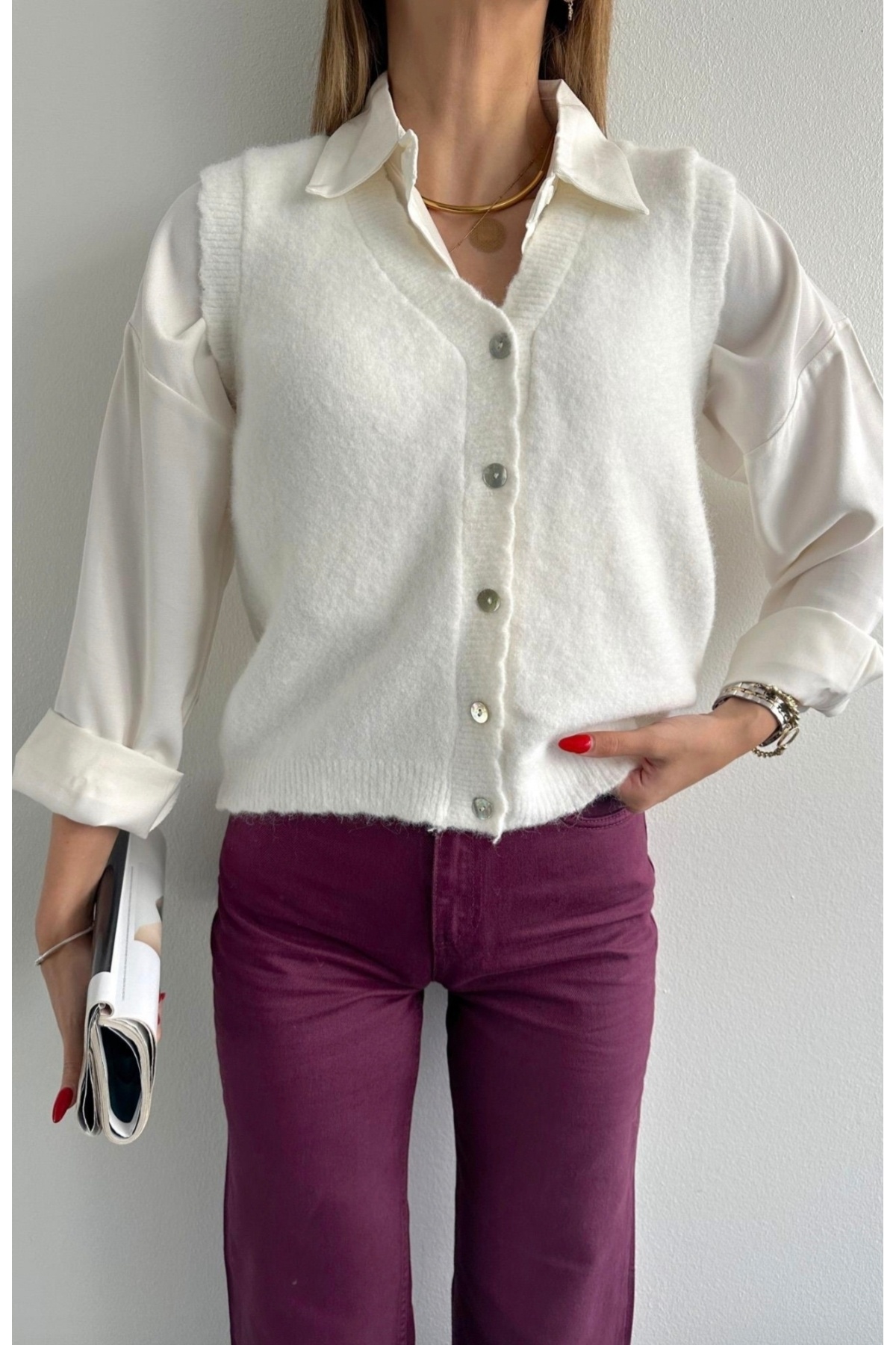 Düğmeli Sophie Triko Yelek Düğmeli Sophie Triko Yelek 2501 Standart