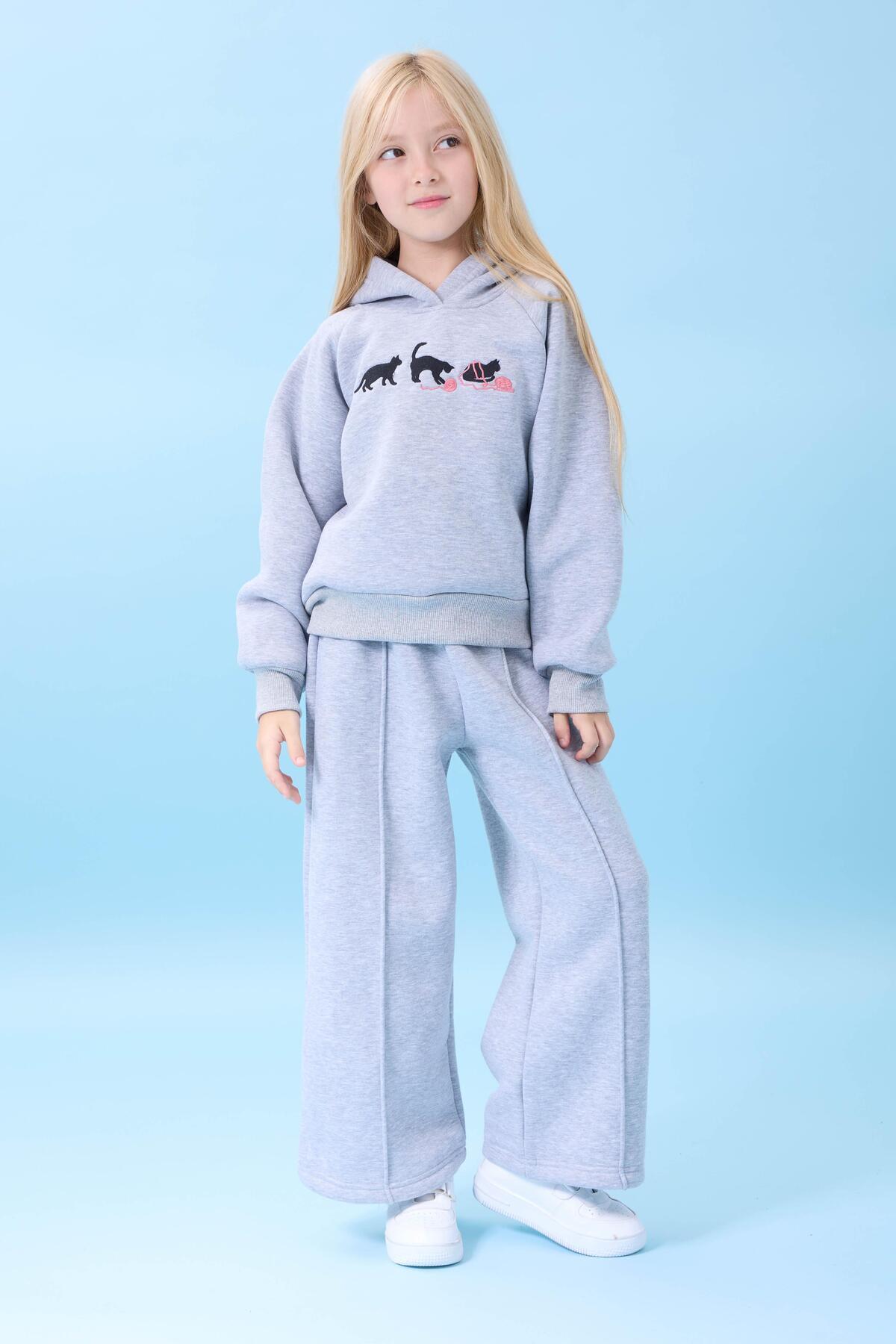 Kız Çocuk Kapüşonlu İçi Polarlı Kedi Nakışlı Şardonlu Kışlık Takım Gri Kız Çocuk Kapüşonlu İçi Polarlı Kedi Nakışlı Şardonlu Kışlık Takım Gri 23102 11-12 Yaş