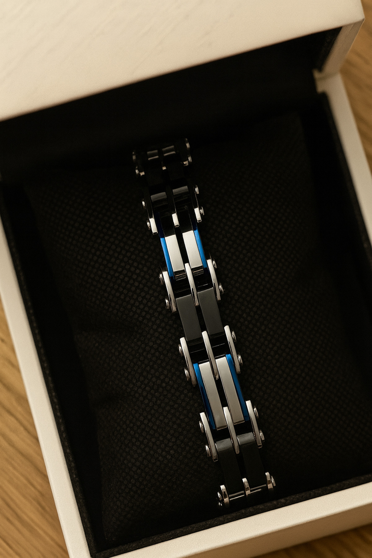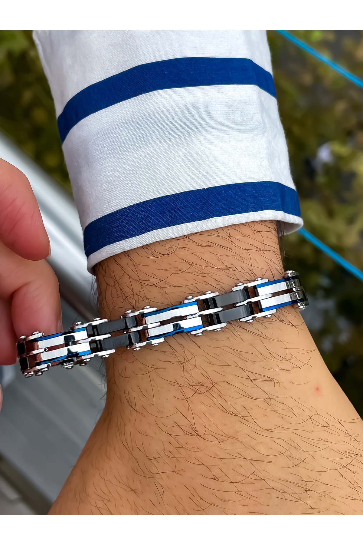 orjinal Çift Taraflı Paslanmaz Çelik Erkek Bileklik gümüş-lacivert Renk orjinal Çift Taraflı Paslanmaz Çelik Erkek Bileklik gümüş-lacivert Renk FVRFOCUSBLK01 تک سایز