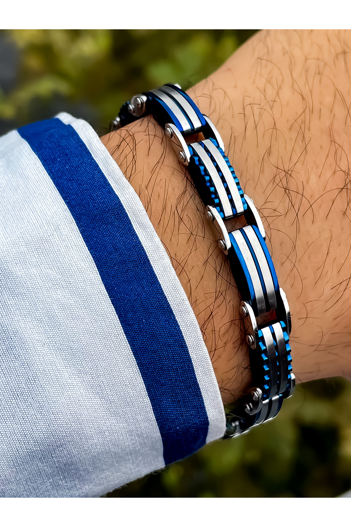 orjinal Çift Taraflı Paslanmaz Çelik Erkek Bileklik gümüş-lacivert Renk orjinal Çift Taraflı Paslanmaz Çelik Erkek Bileklik gümüş-lacivert Renk FVRFOCUSBLK01 تک سایز