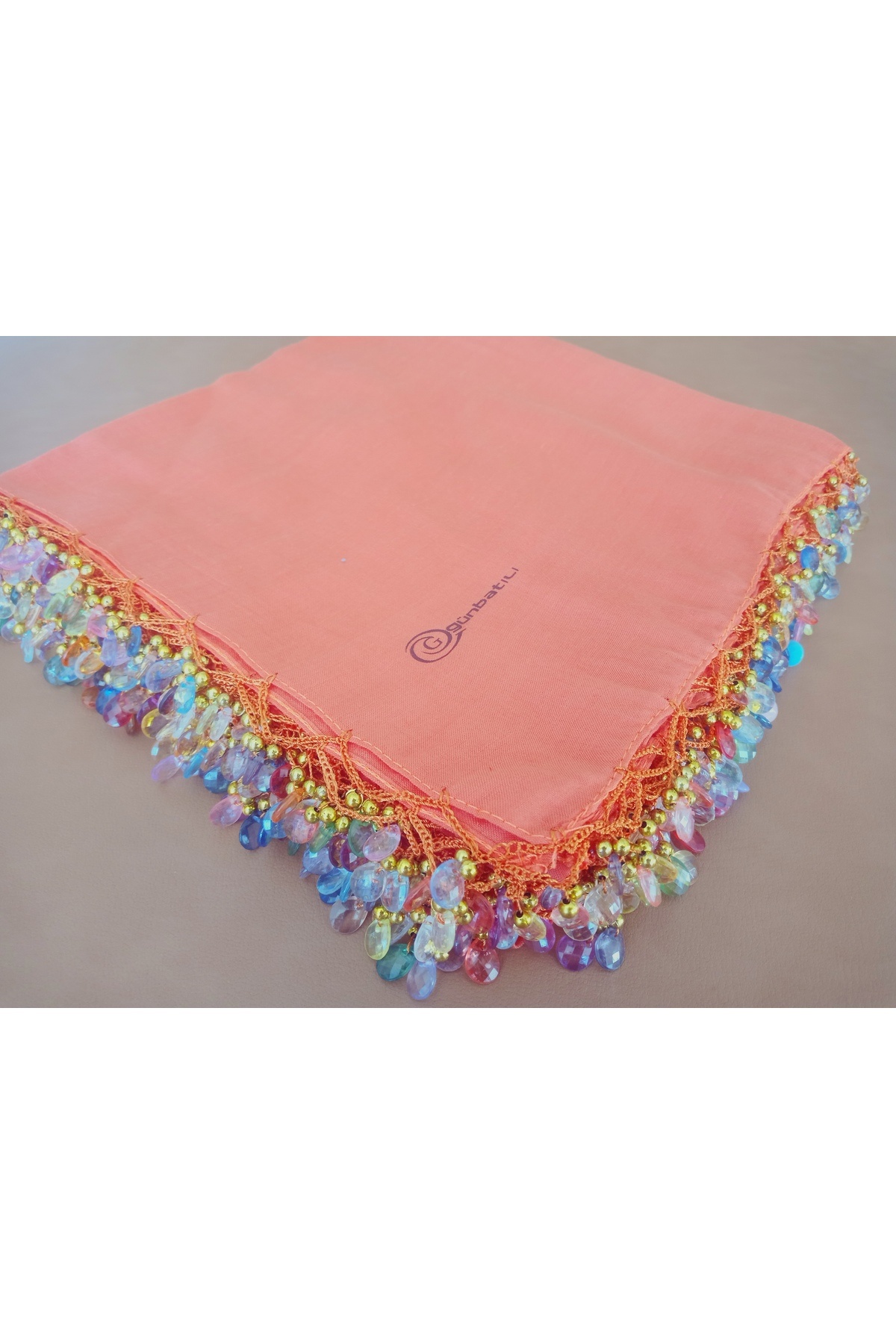 مشخصات فنی El Emeği Kristal Damla Taş Boncuklu Yazma ,Tülbent Yemeni, Fular ,4 Kenar oyalı