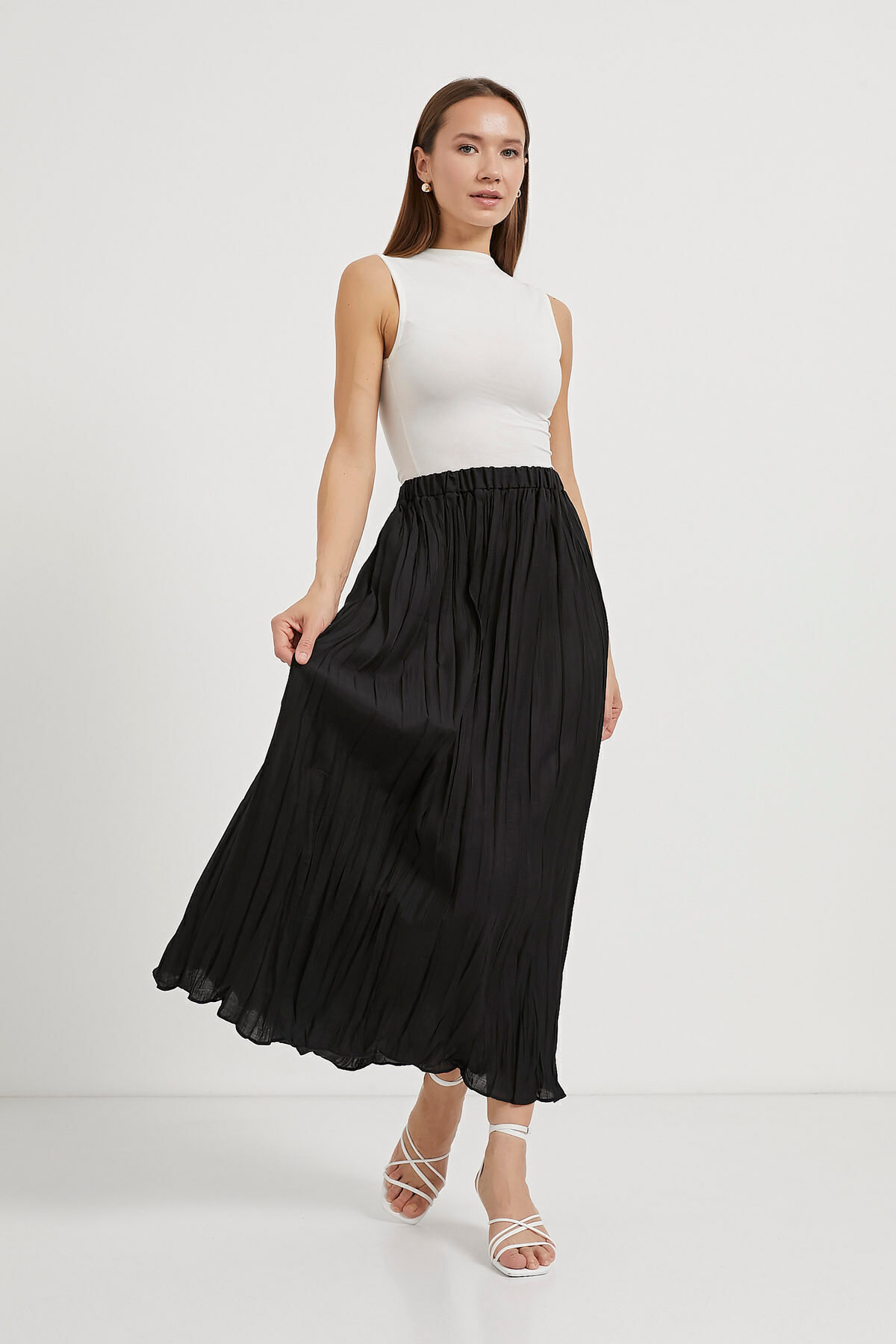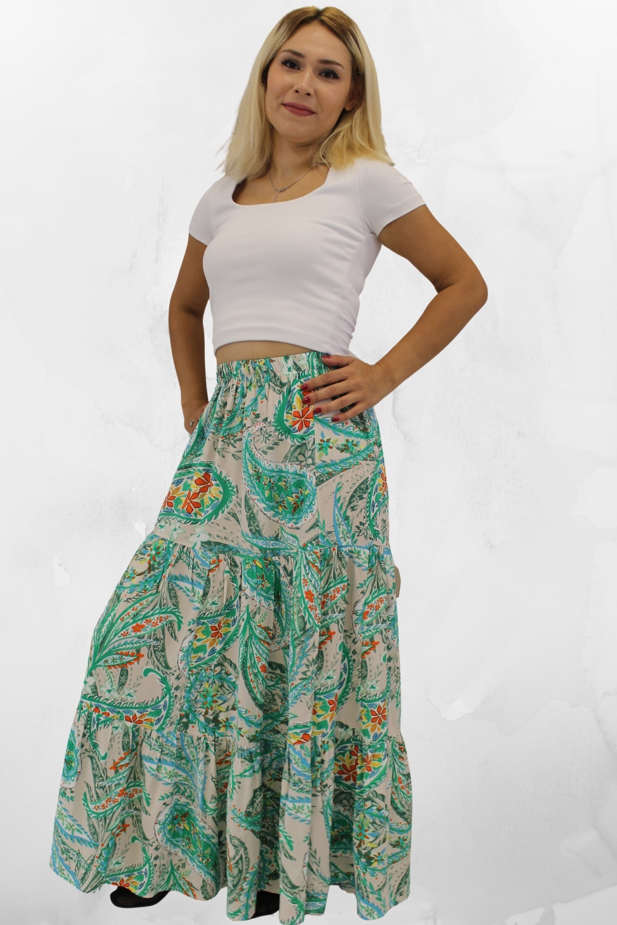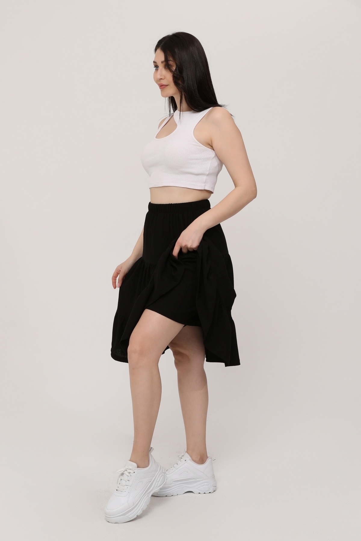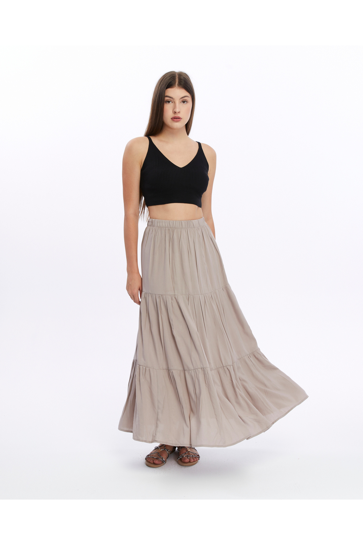RAHAT KESİM VİSKON KUMAŞ BELİ LASTİKLİ FIRFIRLI UZUN KADIN ÇİNGENE ETEK RAHAT KESİM VİSKON KUMAŞ BELİ LASTİKLİ FIRFIRLI UZUN KADIN ÇİNGENE ETEK MAKUZN50 42