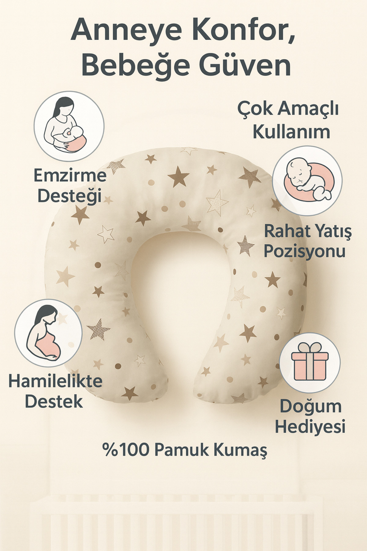 Bebek Emzirme Minderi Bej Renk Yıldız Desenli Destek Yastığı Bebek Emzirme Minderi Bej Renk Yıldız Desenli Destek Yastığı 513 تک سایز
