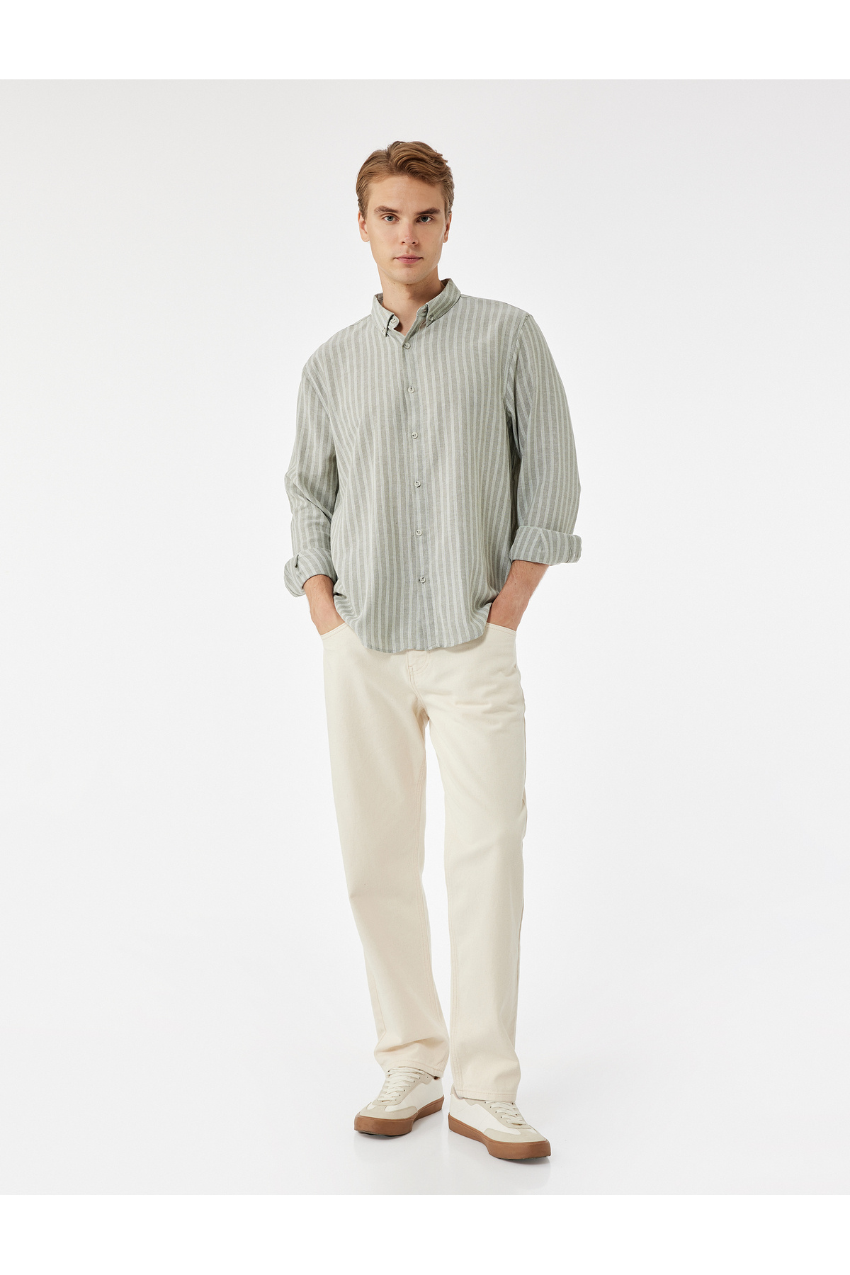 Düğmeli Yaka Pamuklu Regular Fit Uzun Kollu Gömlek Düğmeli Yaka Pamuklu Regular Fit Uzun Kollu Gömlek 6WAM60105HW 2XL