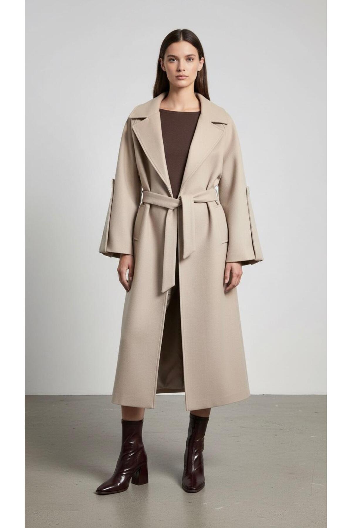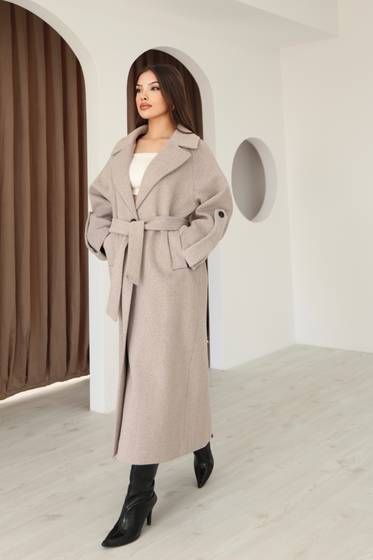 Kadın Bej Premium Oversize Kazayağı Pamuklu Uzun Kaşe Kaban Kadın Bej Premium Oversize Kazayağı Pamuklu Uzun Kaşe Kaban 8481 M