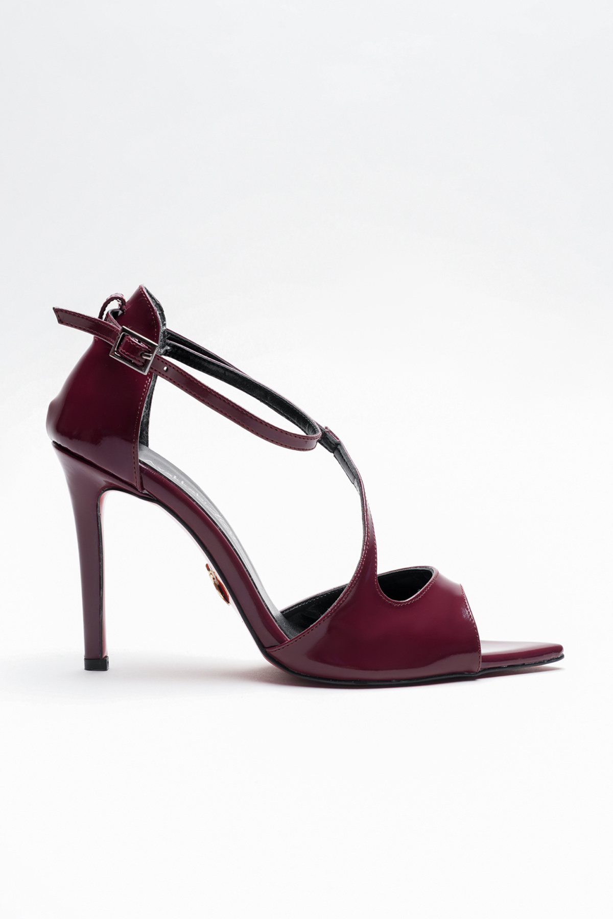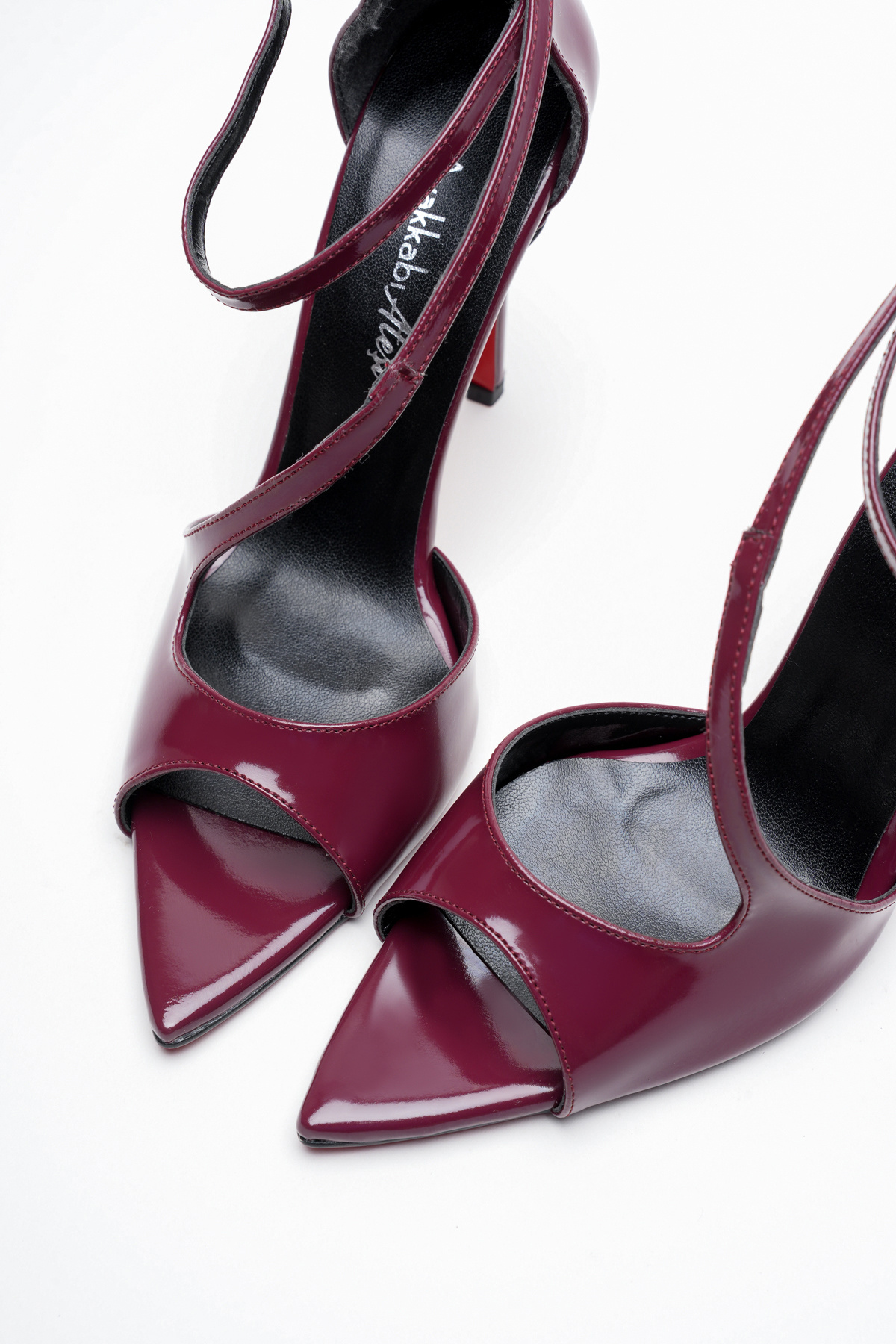 Kadın Çapraz Bantlı İnce Topuklu Ayakkabı Yelar Bordo Rugan Kadın Çapraz Bantlı İnce Topuklu Ayakkabı Yelar Bordo Rugan 2099Y-54 40