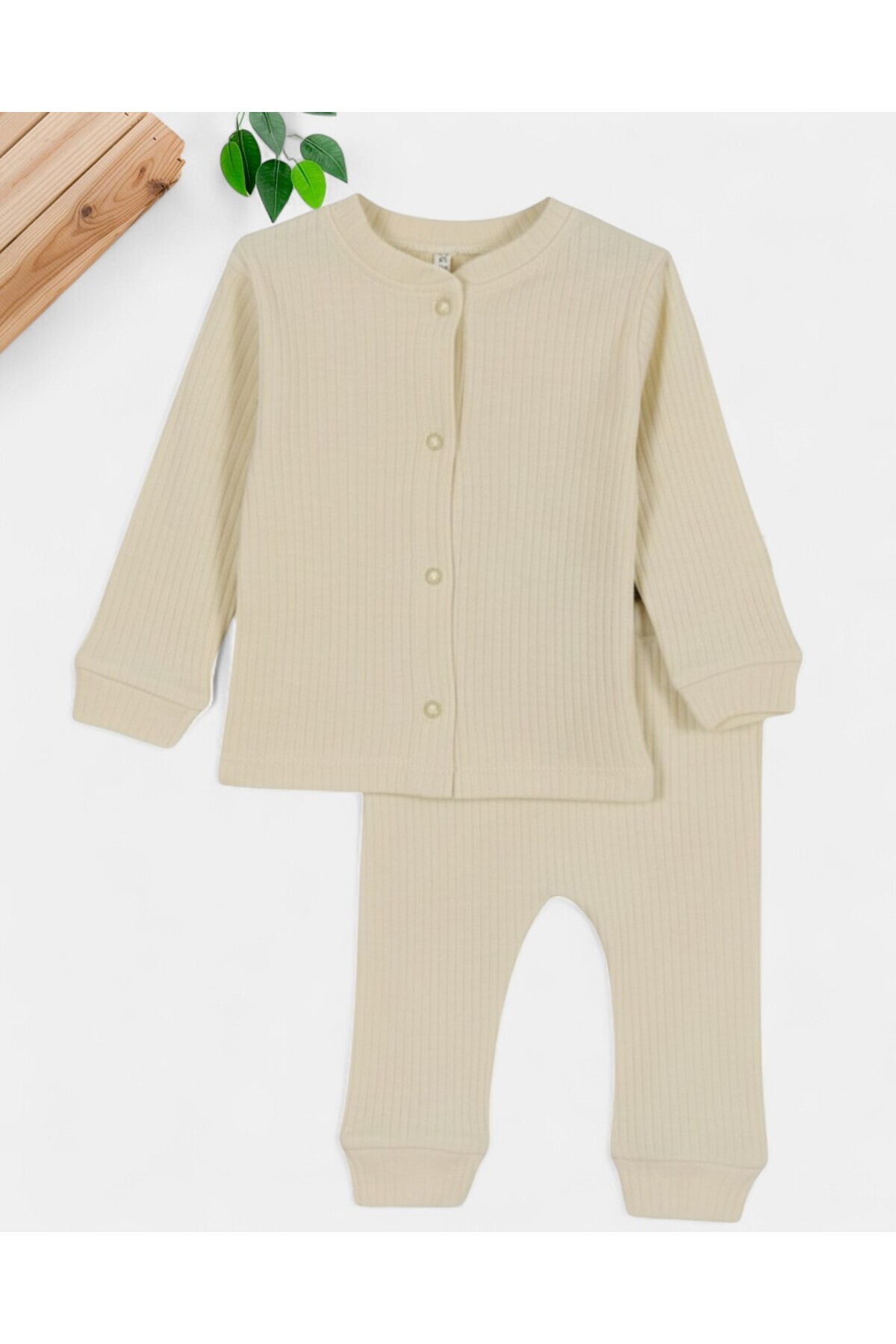 Krem Renk Kız ve Erkek Bebekler İçin Fitilli Çıtçıtlı Mevsimlik 3-6-9-12 Ay Pijama Takımı Krem Renk Kız ve Erkek Bebekler İçin Fitilli Çıtçıtlı Mevsimlik 3-6-9-12 Ay Pijama Takımı R1052-EGEB 9 - 12 Ay