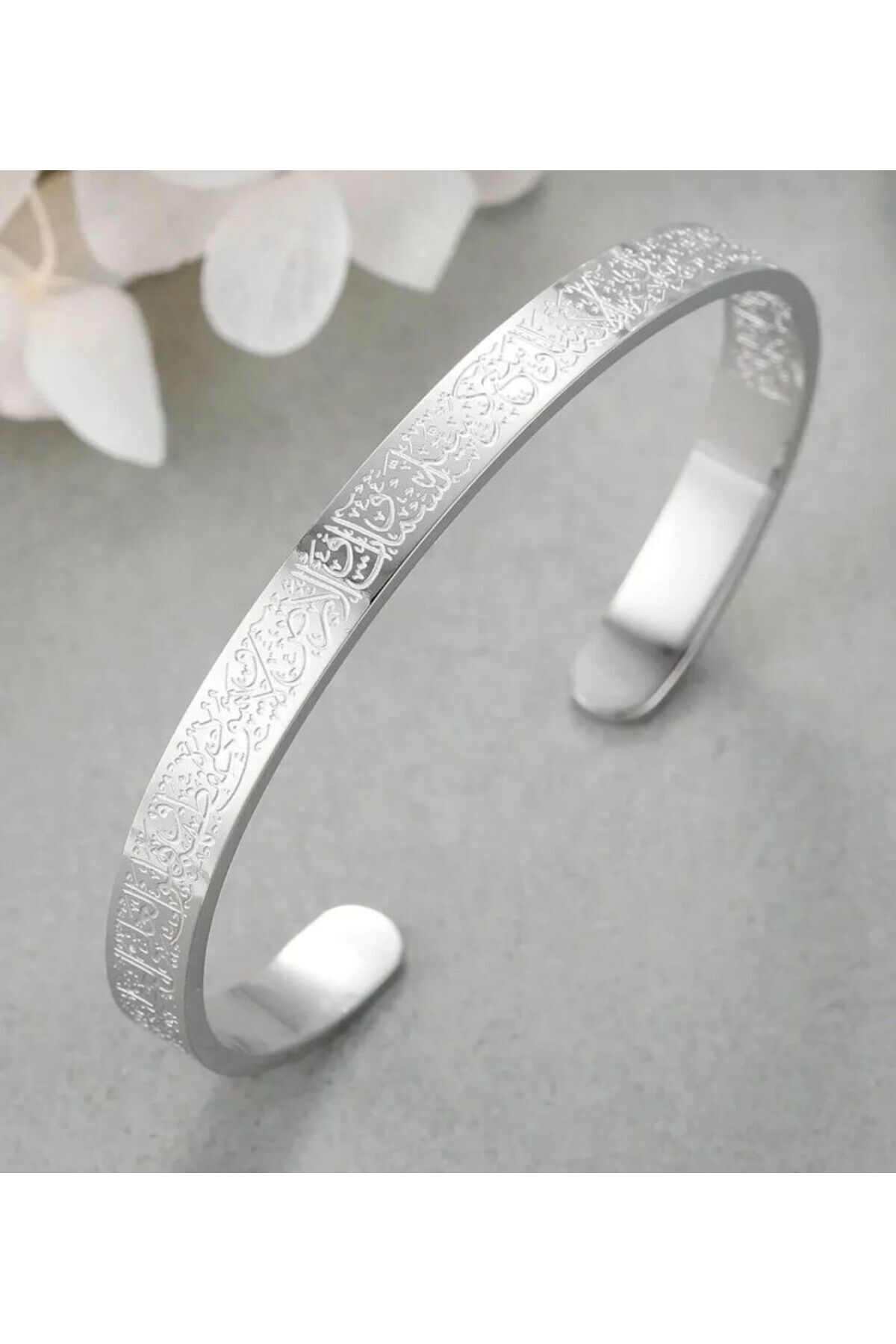 Kadın/Erkek Gümüş Rengi Ayetel Kürsi Lazer İşlemeli Kelepçe Çelik Bileklik Kadın/Erkek Gümüş Rengi Ayetel Kürsi Lazer İşlemeli Kelepçe Çelik Bileklik brm53197515 Standart