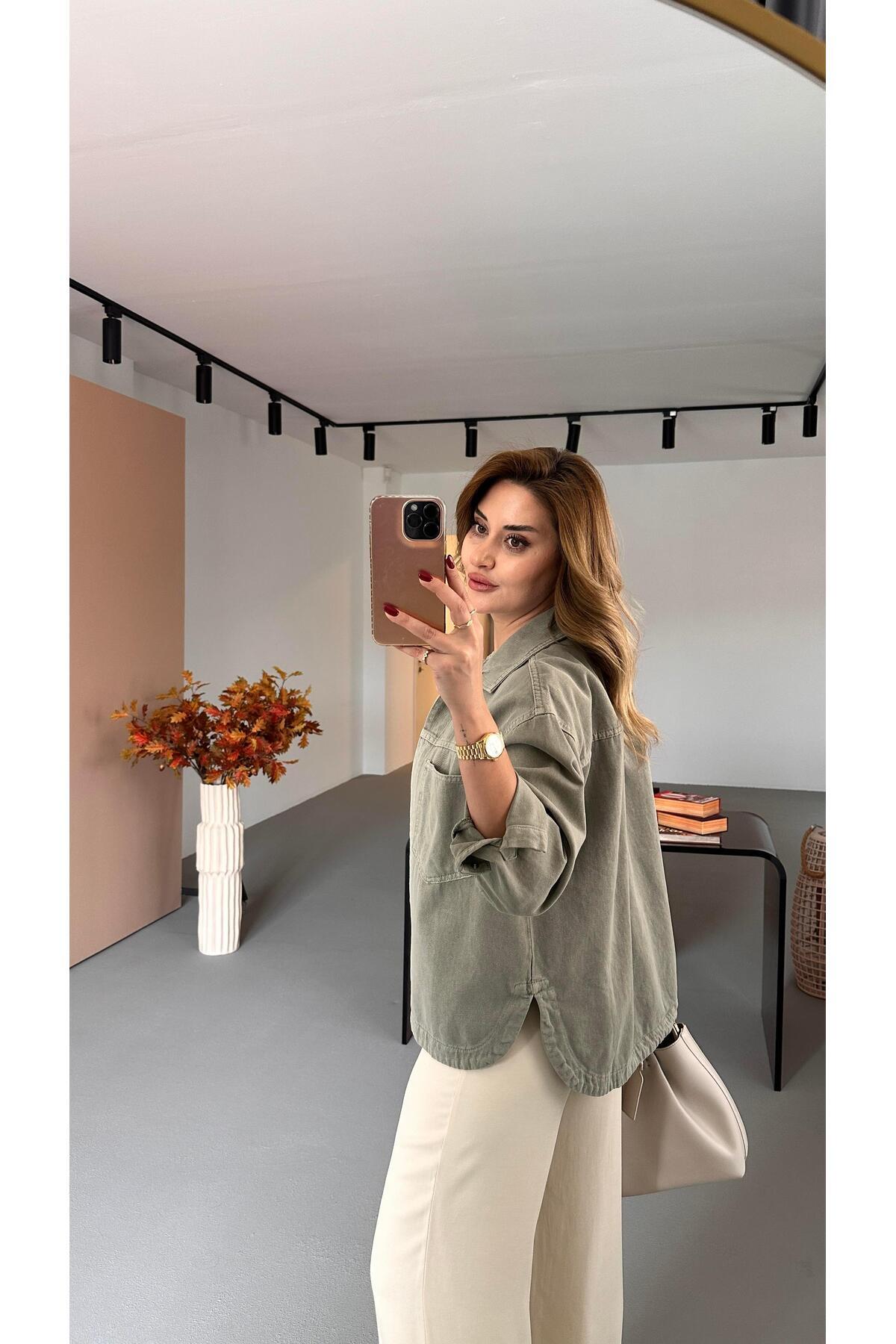 Cep Detay Haki Yıkamalı Gabardin Ceket Cep Detay Haki Yıkamalı Gabardin Ceket CKT-0152-HK.YKM L