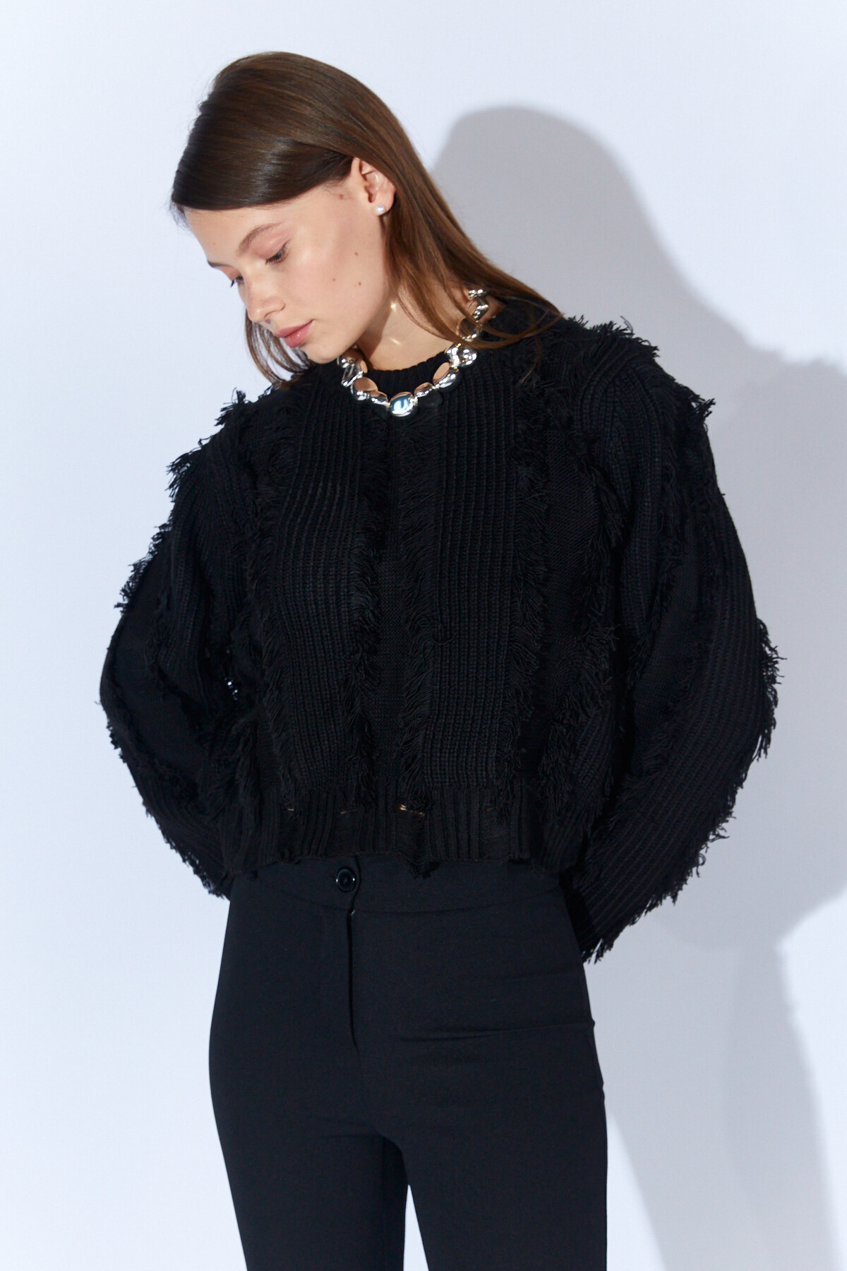 PüsküL Detaylı Kadın Kazak - Siyah | MKW535255-01 PüsküL Detaylı Kadın Kazak - Siyah | MKW535255-01 Standart