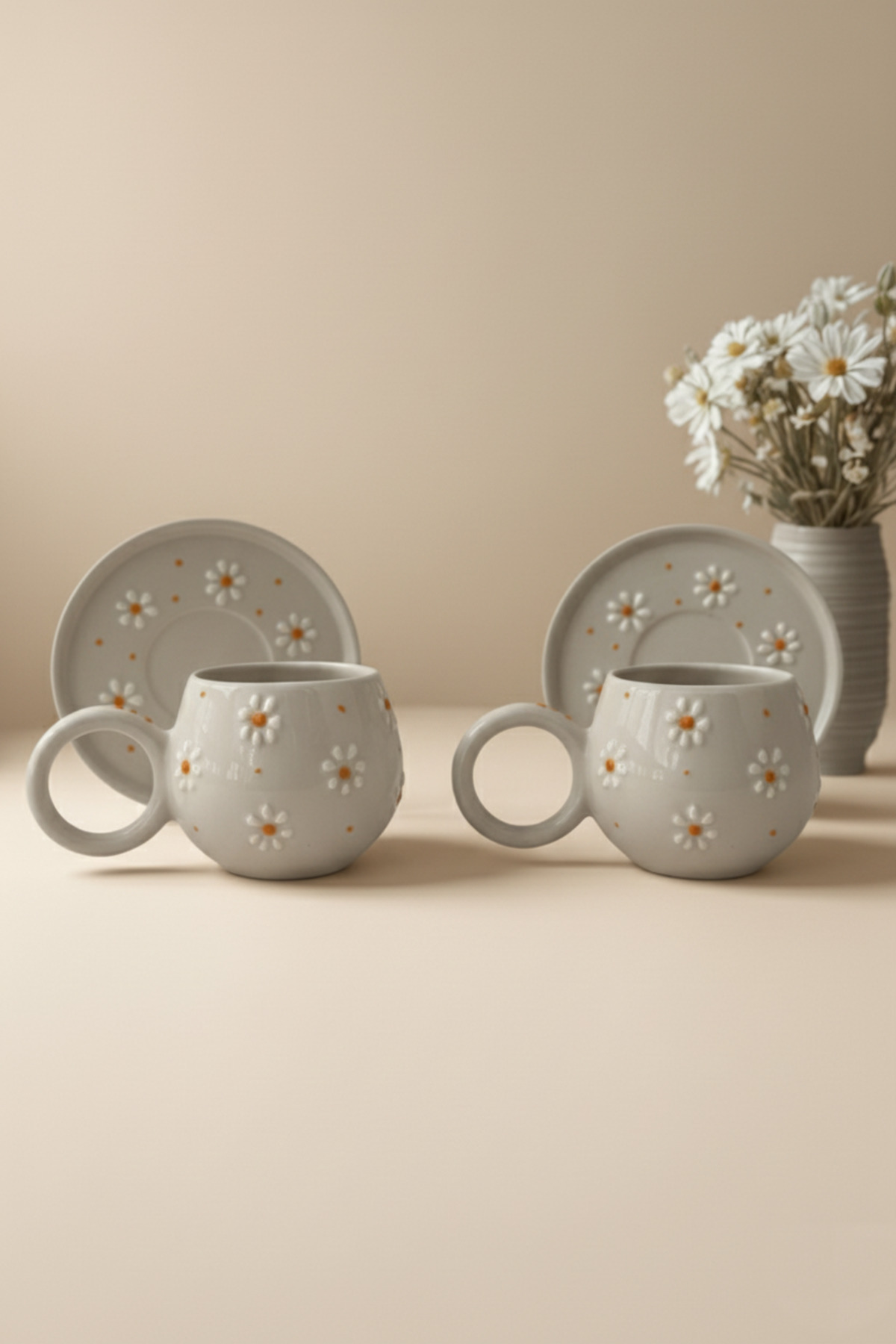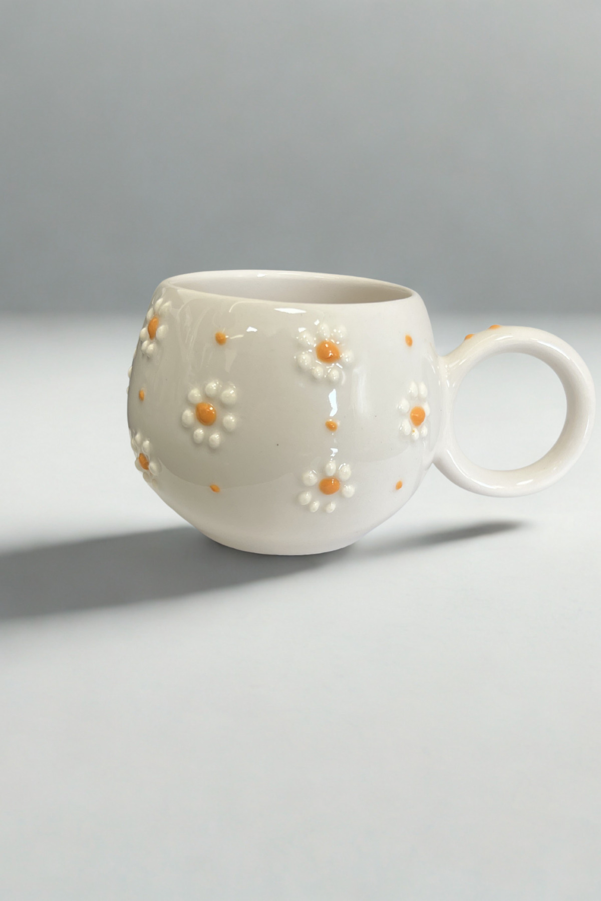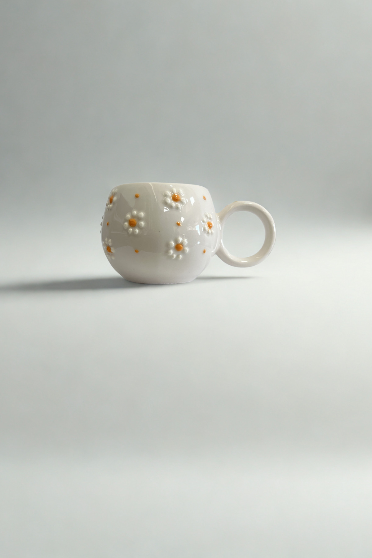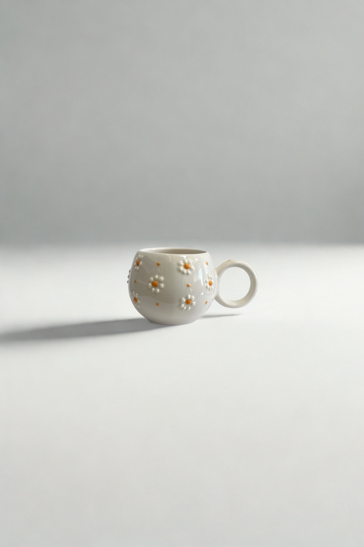 Papatya Kabartmalı Tekli El Yapımı Ece Kupa Mug Papatya Kabartmalı Tekli El Yapımı Ece Kupa Mug KYCR-051 تک سایز