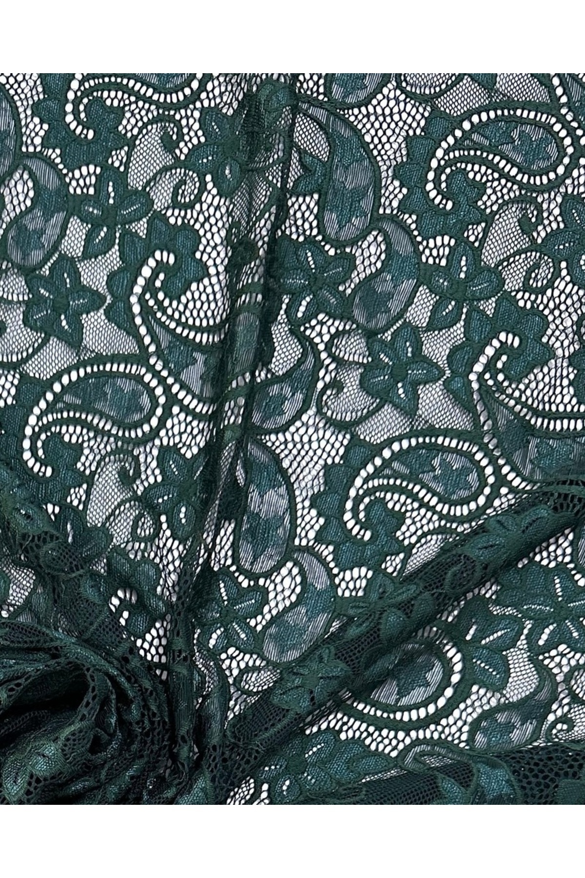 Zümrüt Yeşili Likralı Dantel Kumaş (En 150 cm) – Elbiselik, Abiyelik, Süsleme