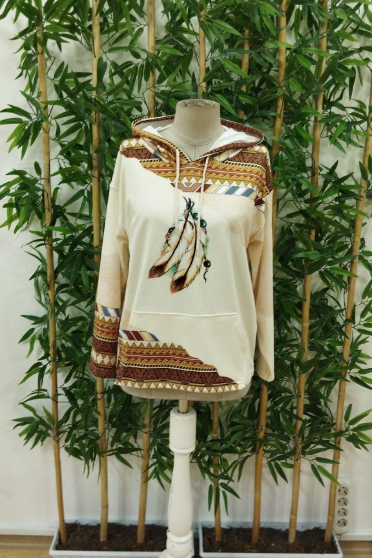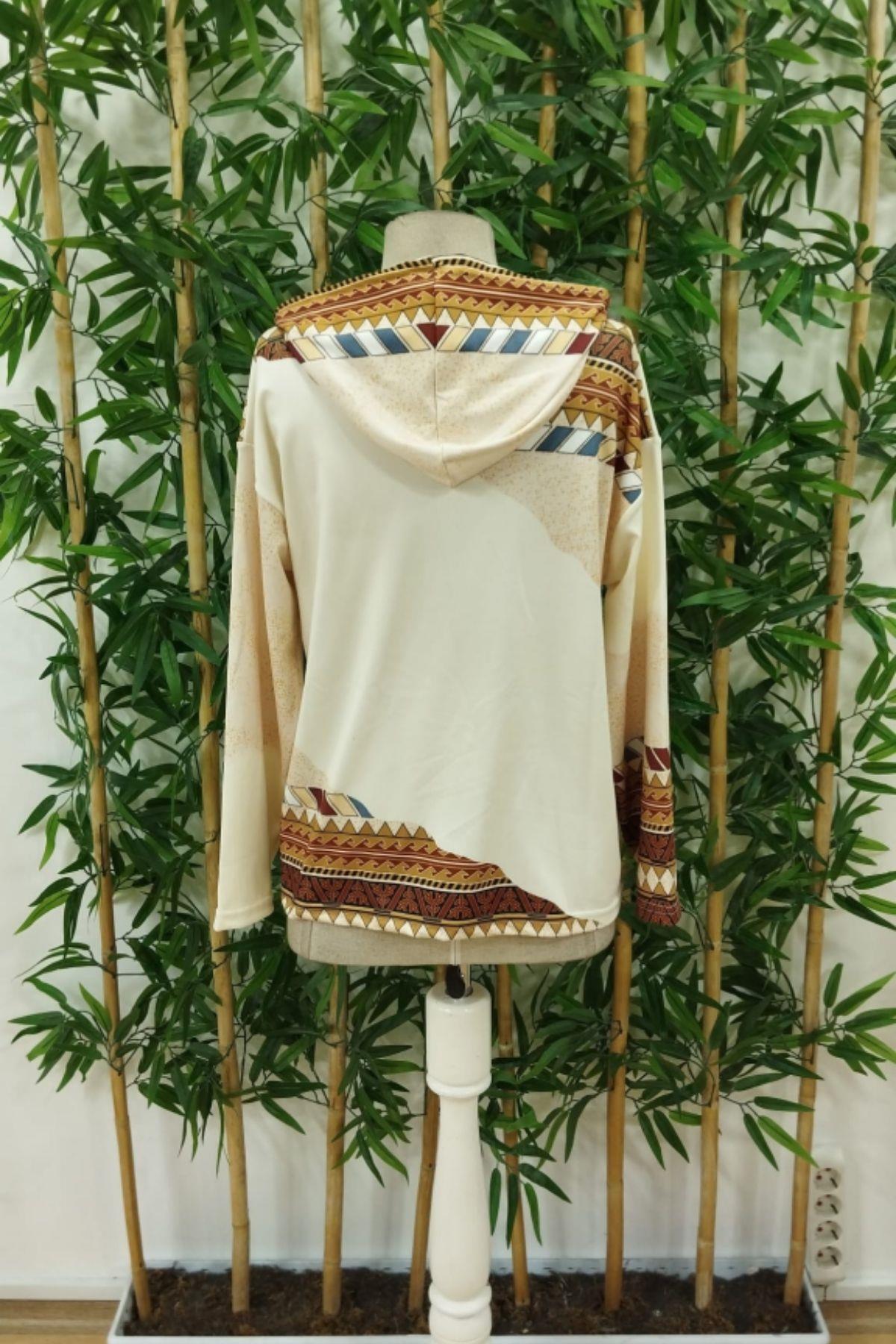 Kapüşonlu Şardonlu Dalgıç Bluz - Bej Kapüşonlu Şardonlu Dalgıç Bluz - Bej JS87096 2XL-3XL