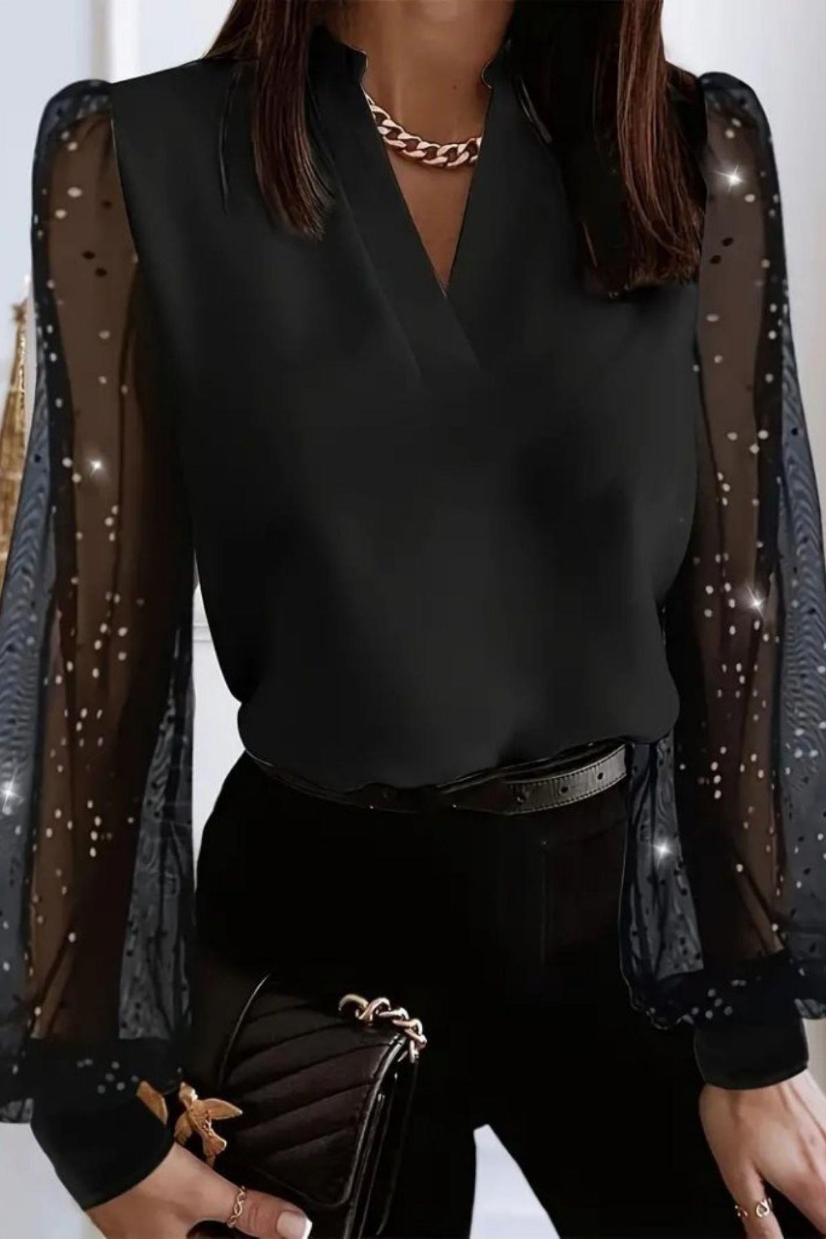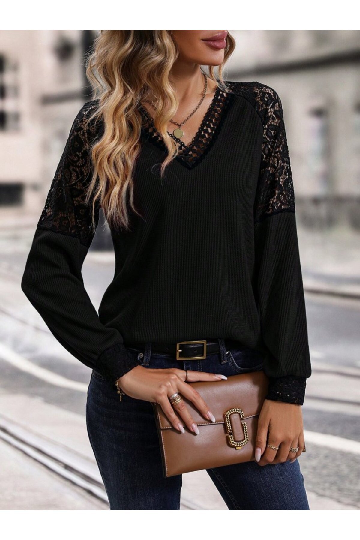 V Yaka Dantelli Viskon Bluz - Siyah V Yaka Dantelli Viskon Bluz - Siyah JS72320 2XL-3XL