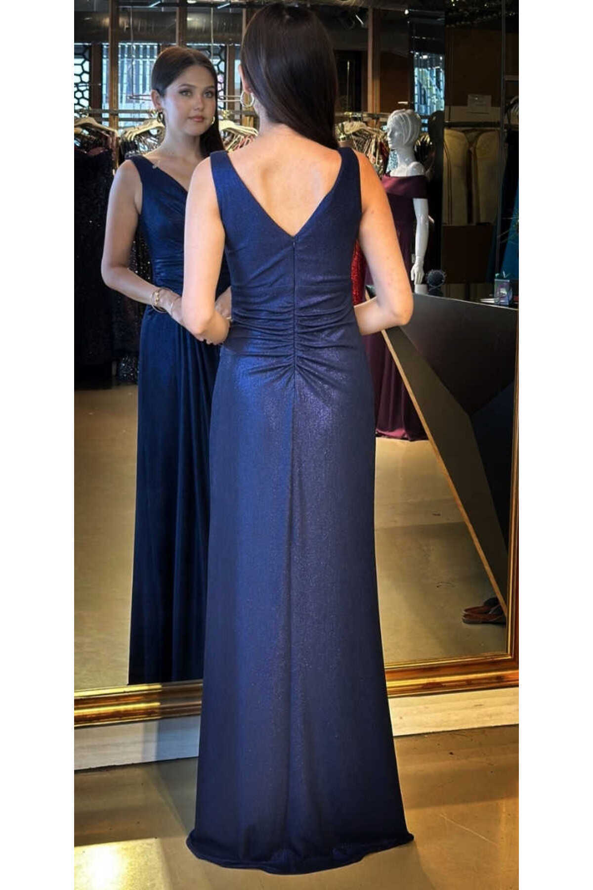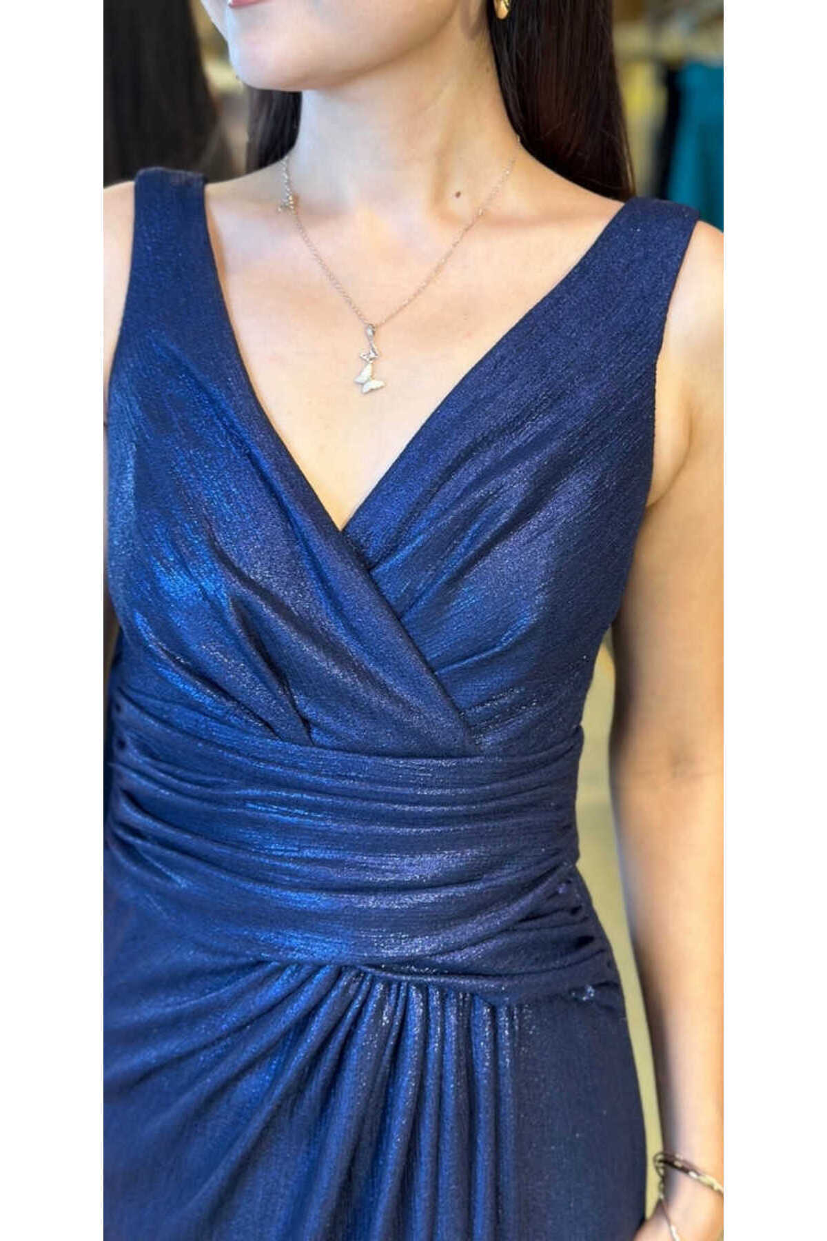 Lacivert Kalın Askı V Yaka Anvelop Yırtmaçlı Düz Kesim Simli Uzun Abiye Elbise 11074 Lacivert Kalın Askı V Yaka Anvelop Yırtmaçlı Düz Kesim Simli Uzun Abiye Elbise 11074 52