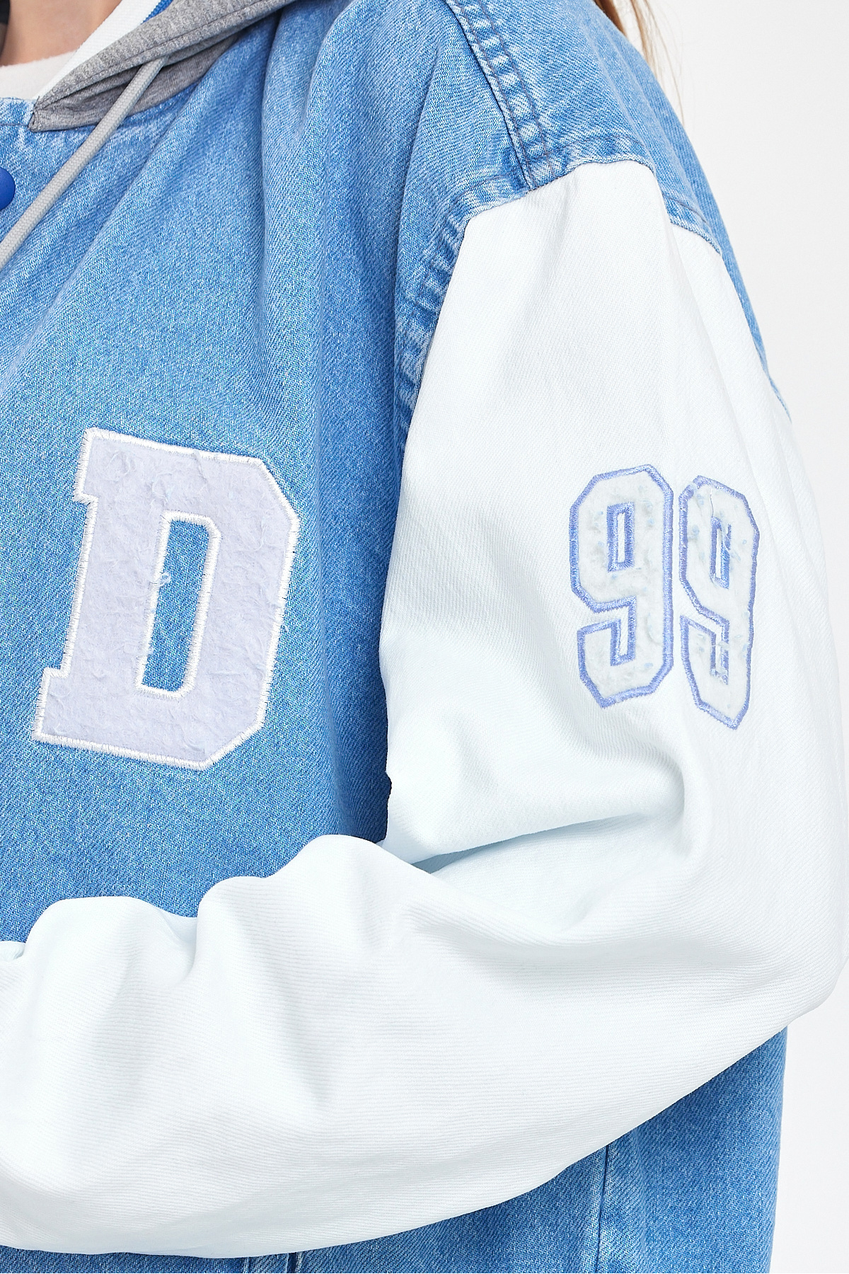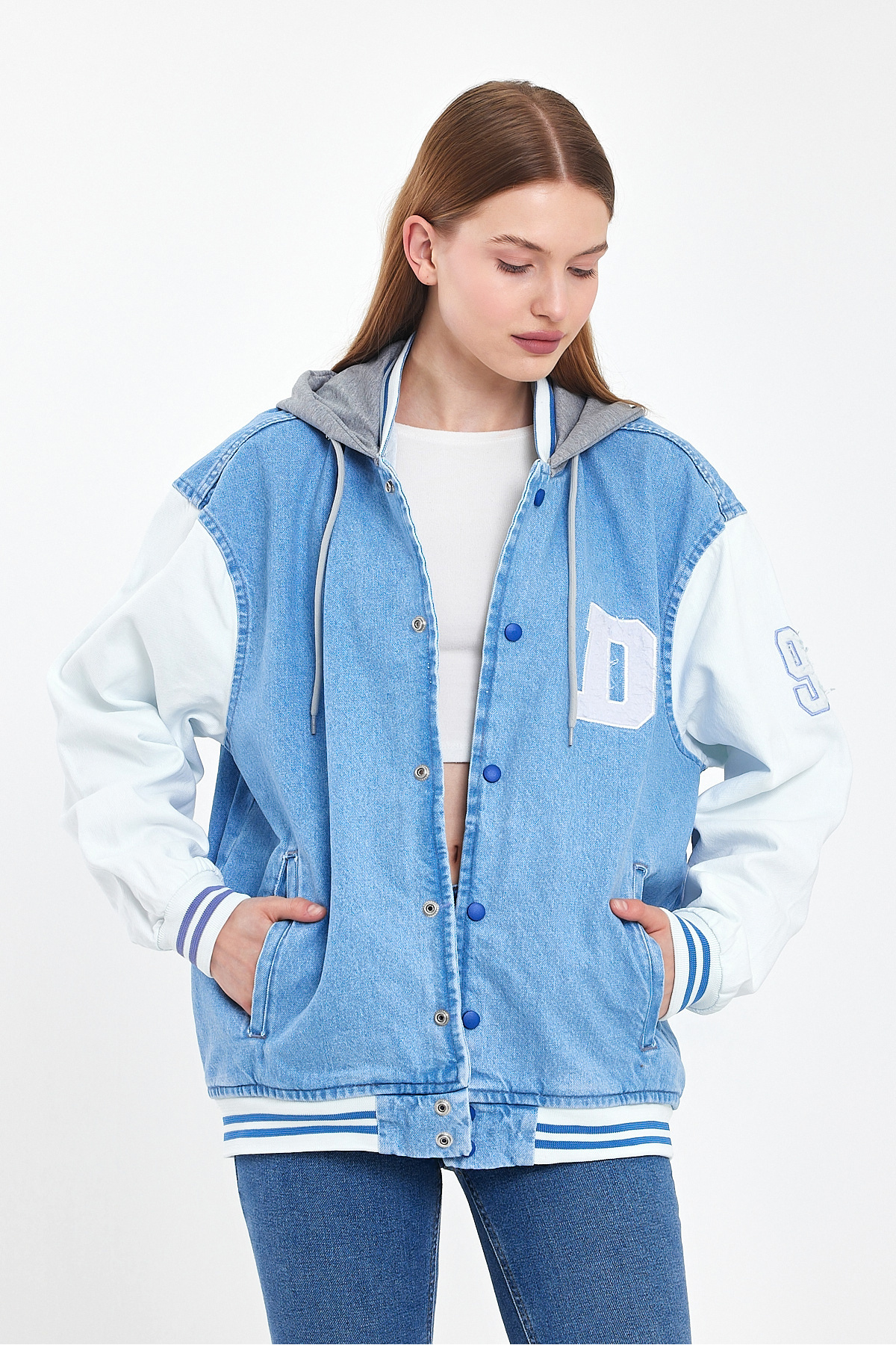 Kadın Oversize Kapşonlu Buz Mavi Kot Kolej Ceket Kadın Oversize Kapşonlu Buz Mavi Kot Kolej Ceket Ayna-1163DM 2XL