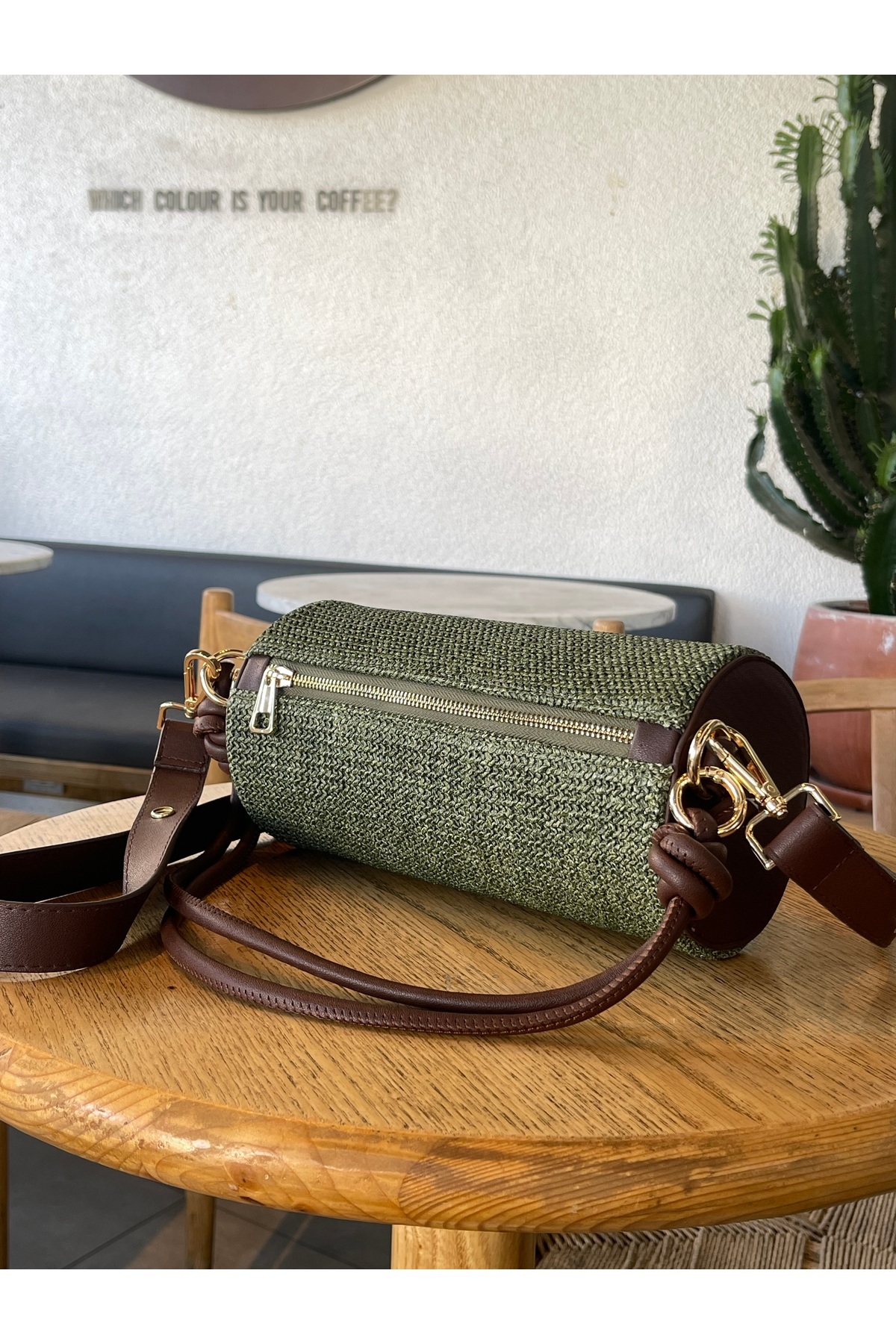 Yeşil Kadın Silindir Model El Ve Omuz Çantası Yeşil Kadın Silindir Model El Ve Omuz Çantası NA812 تک سایز