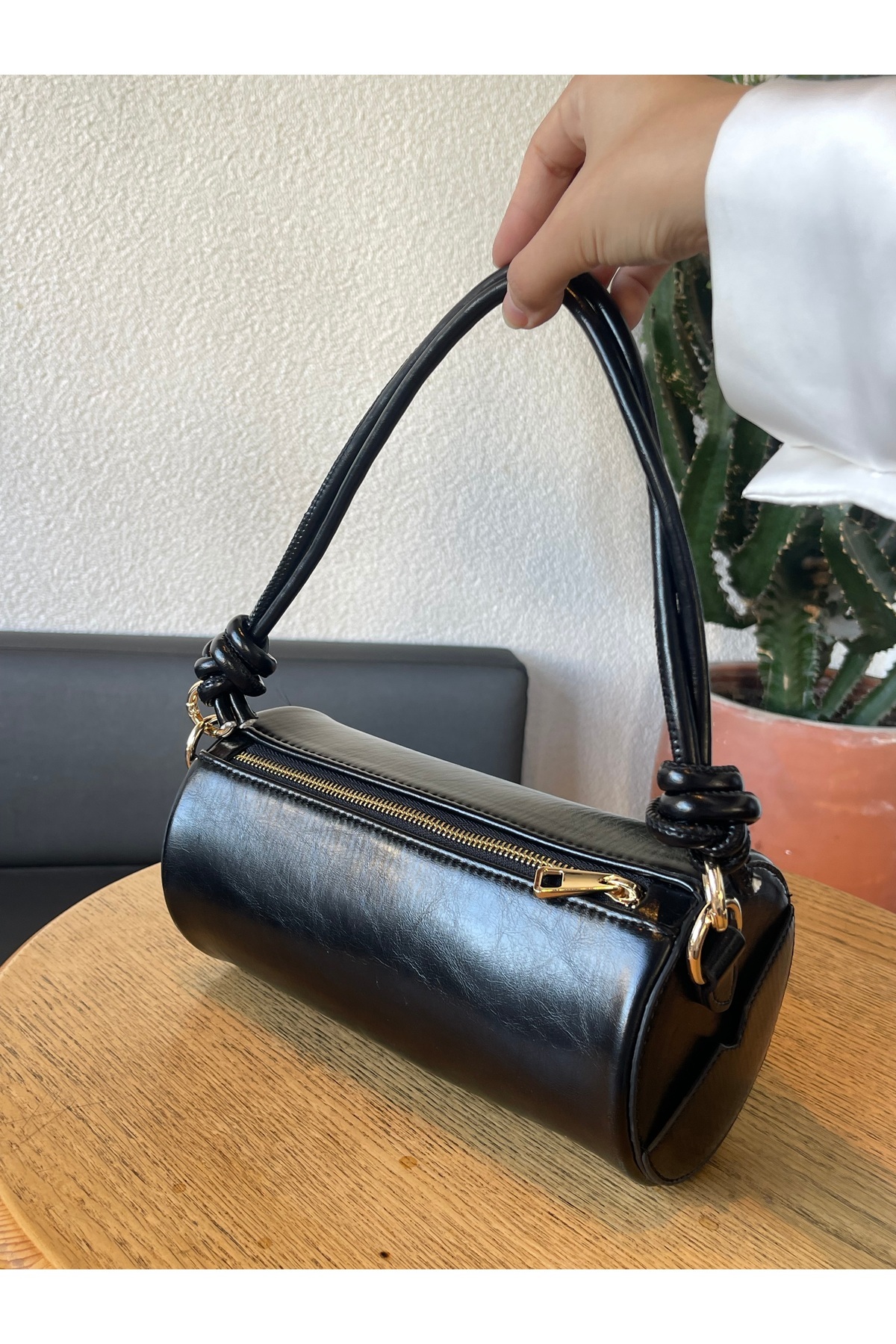 Siyah Kadın Silindir Model El Ve Omuz Çantası Siyah Kadın Silindir Model El Ve Omuz Çantası NA812 تک سایز