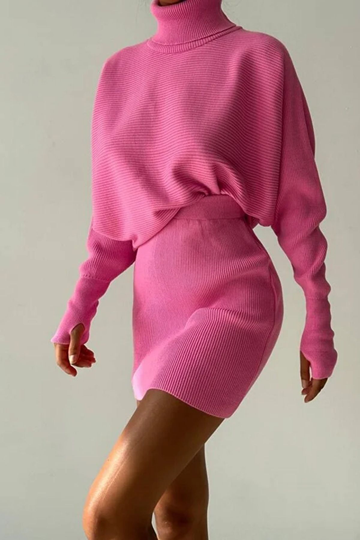 Balıkçı Yaka El Geçmeli Triko Kazak Ve Yüksek Bel Triko Etek Takım Balıkçı Yaka El Geçmeli Triko Kazak Ve Yüksek Bel Triko Etek Takım Aİ1031 Standart