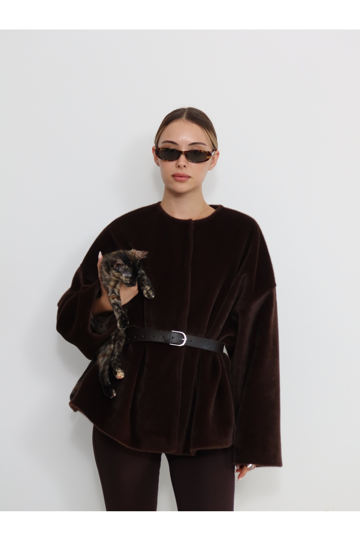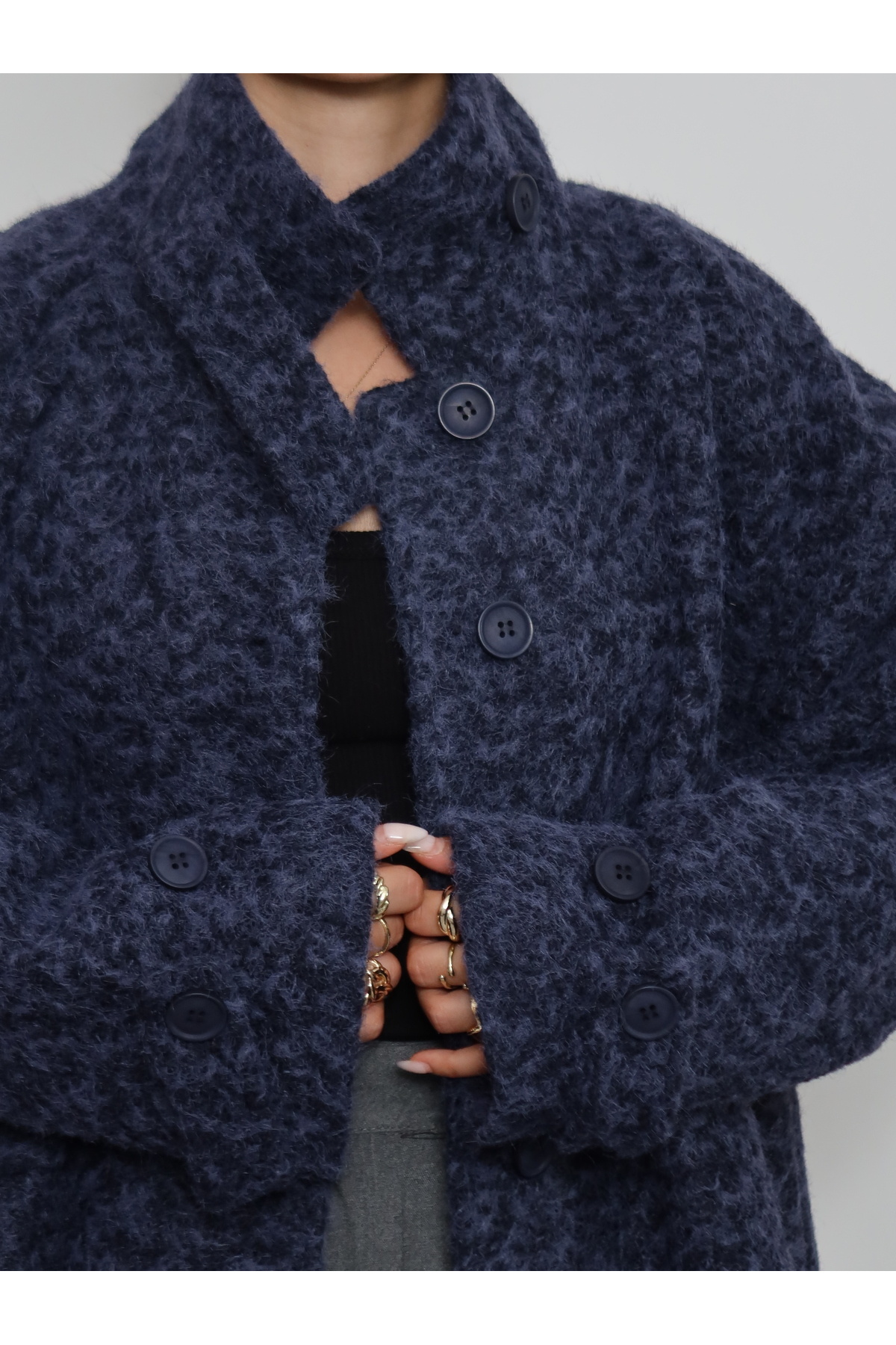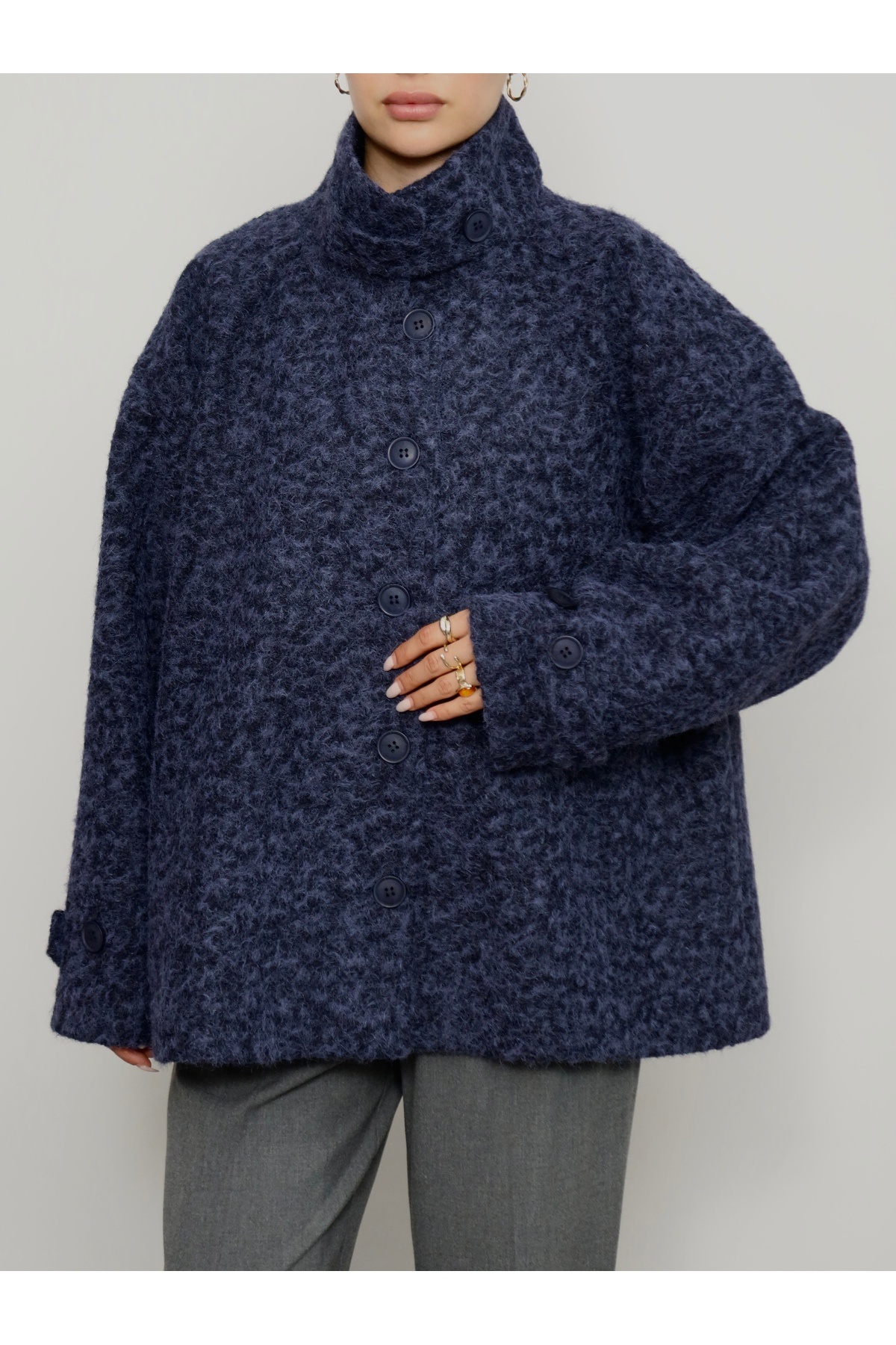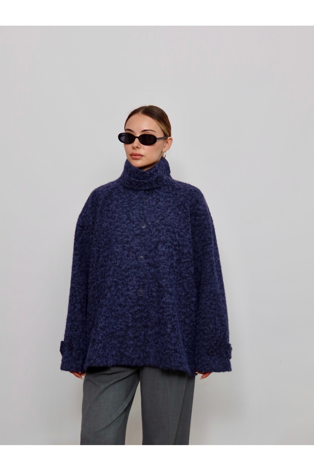Kadın Lacivert Yüksek Yaka Detaylı Kırçıllı Kaşe Ceket Kadın Lacivert Yüksek Yaka Detaylı Kırçıllı Kaşe Ceket ZK-KC01 M