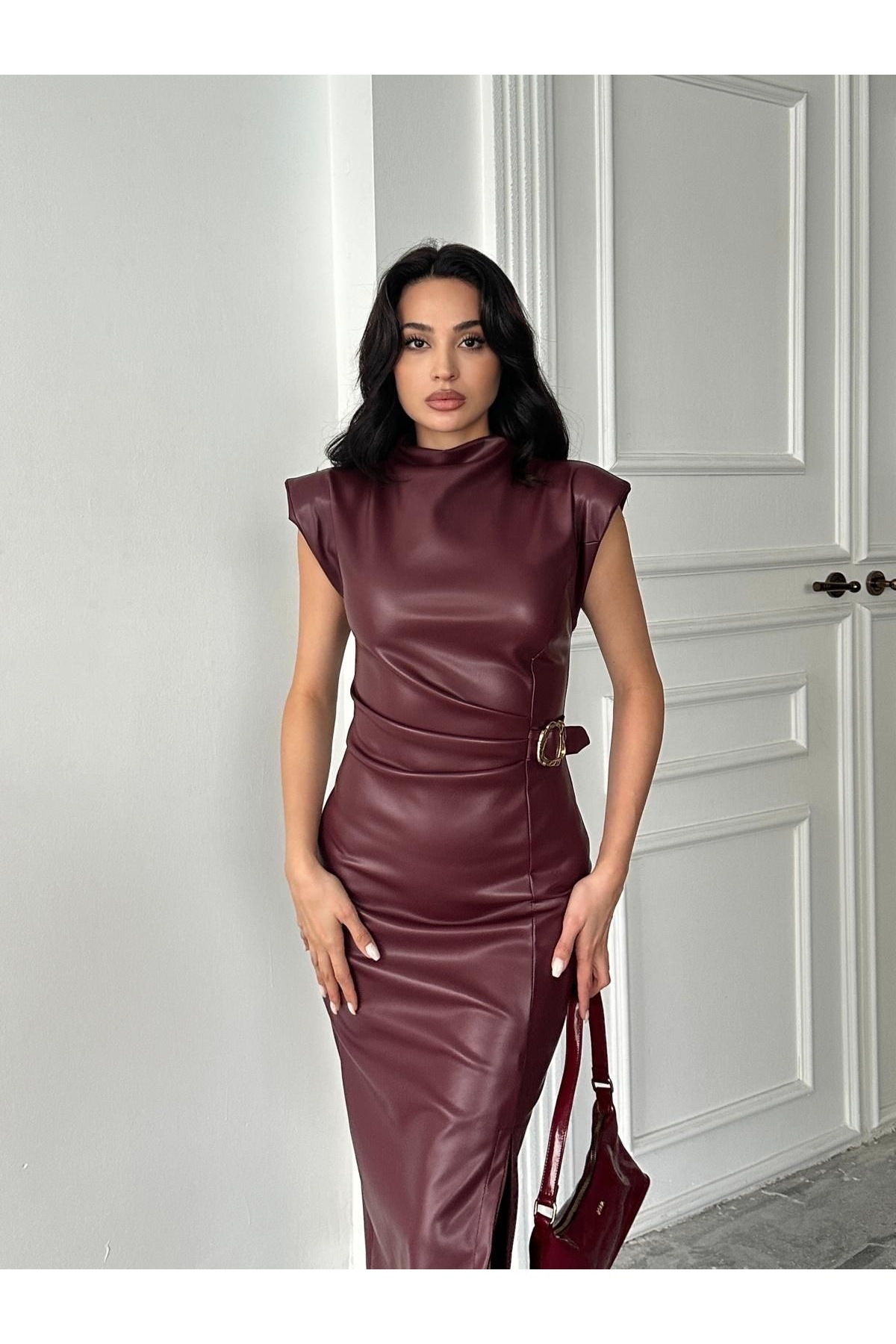 Kadın Uzun Kollu Yakalı Mini Deri Elbise Kadın Uzun Kollu Yakalı Mini Deri Elbise VhXieDTPe4A= 2XL-3XL