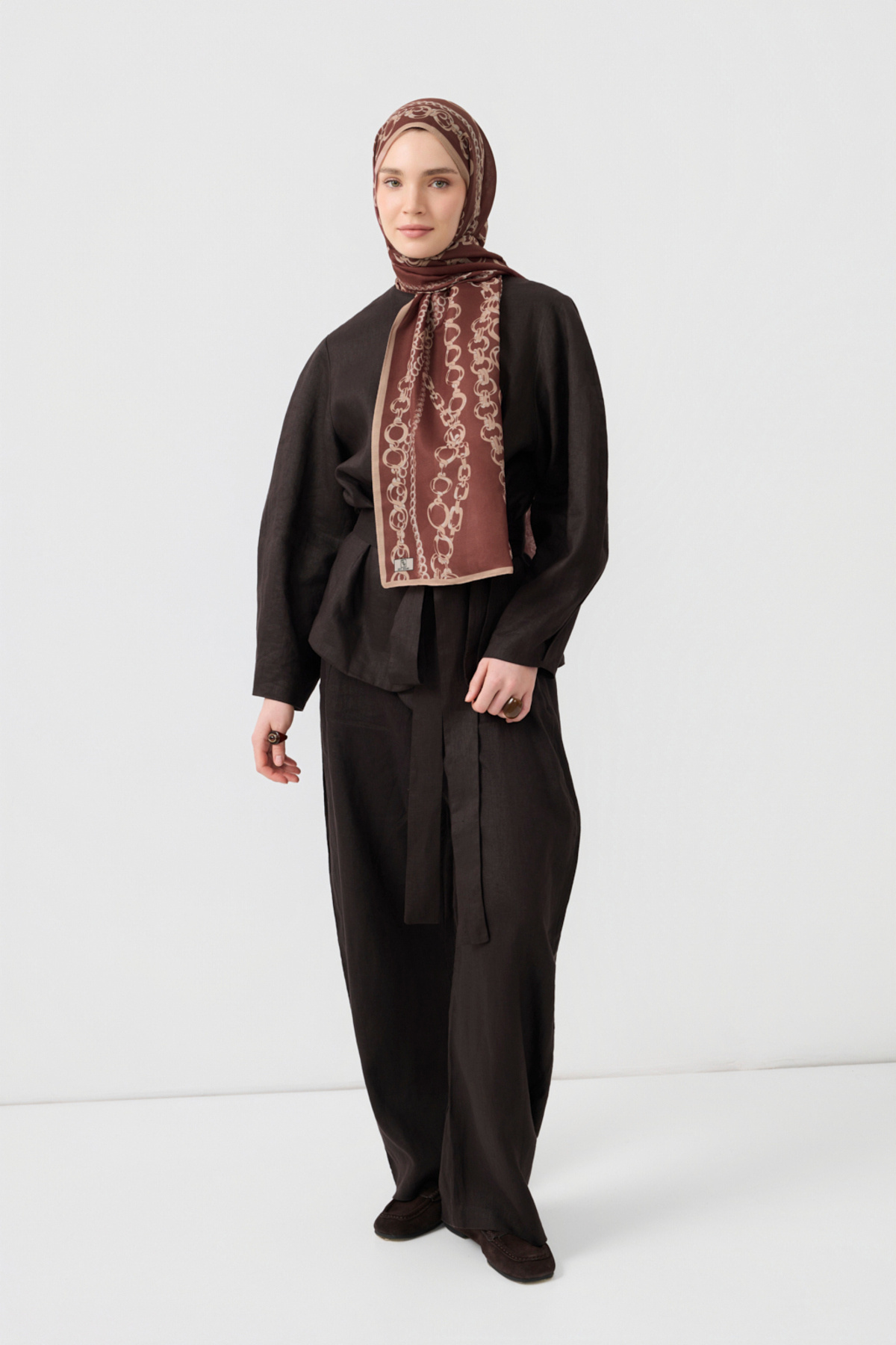 Cotton Twill Şal Loop Line Kızıl Kahve Cotton Twill Şal Loop Line Kızıl Kahve QF26KSAL002 70 x 185