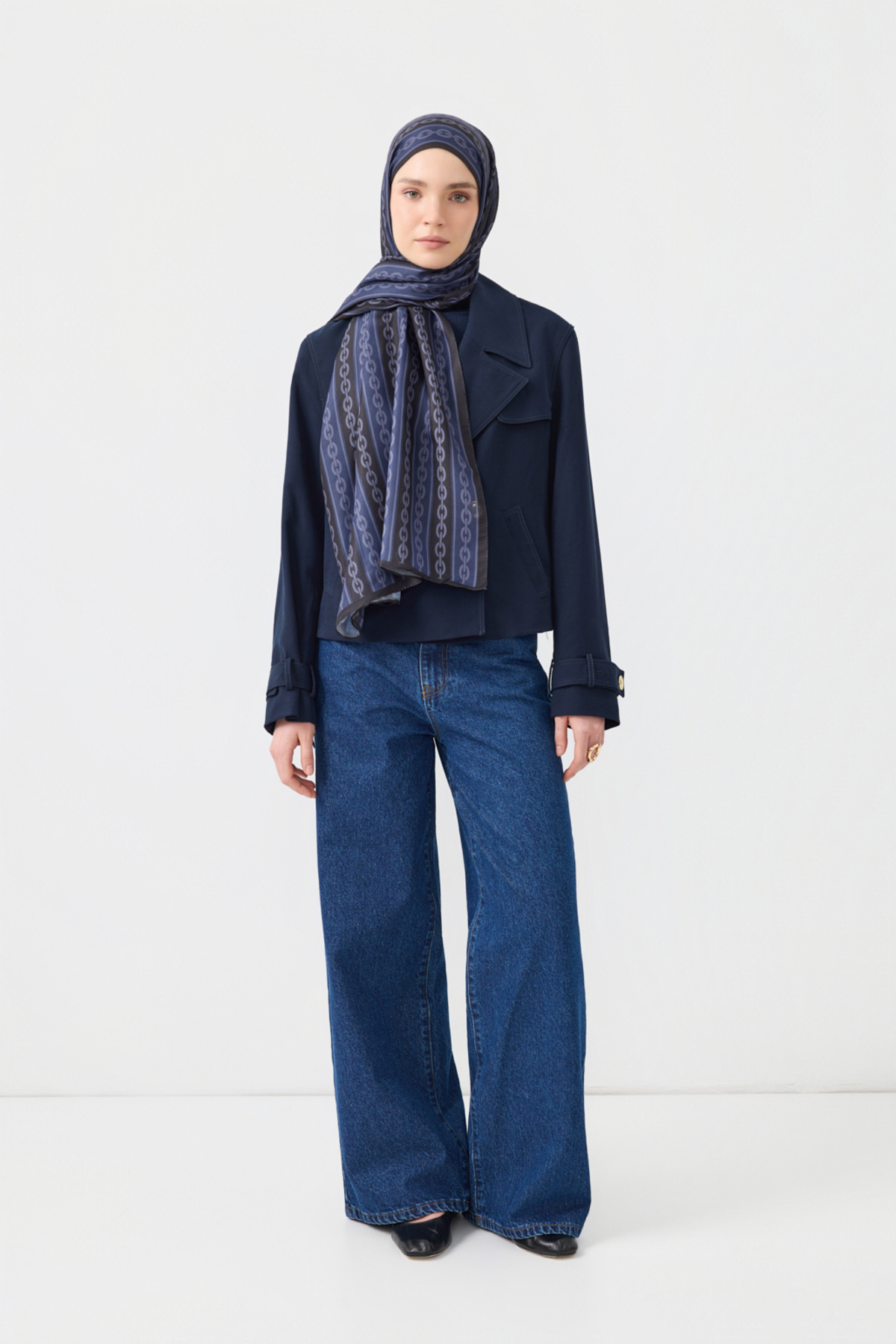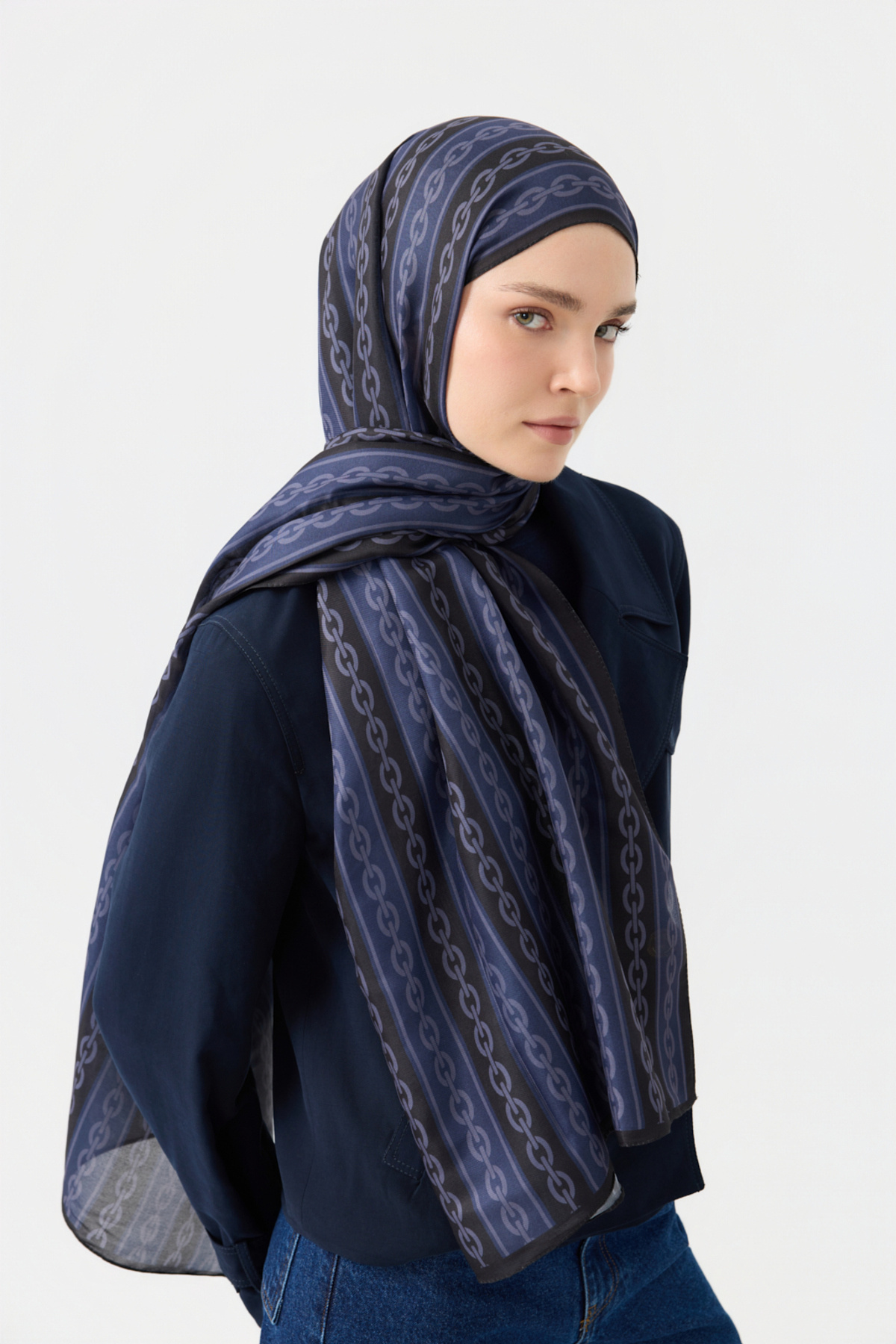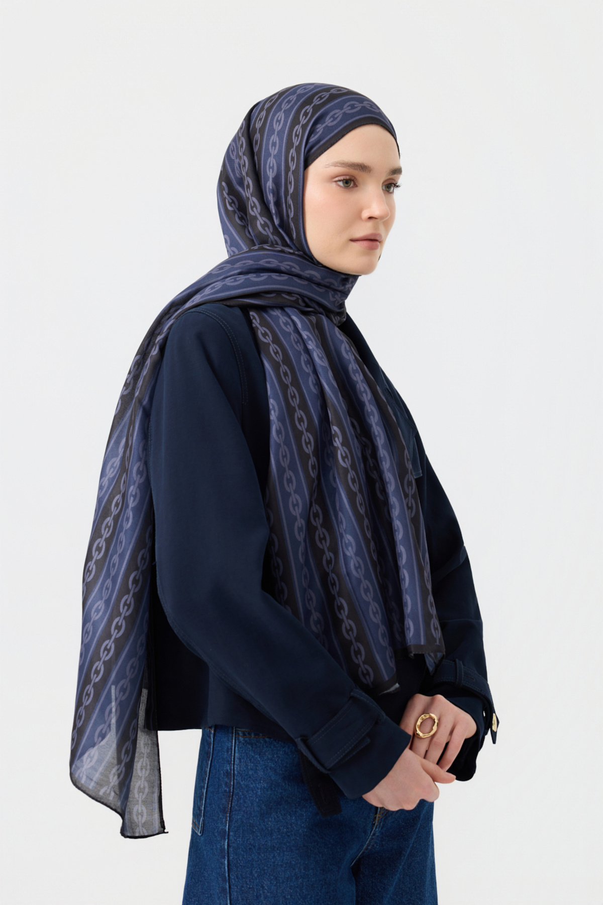 Cotton Twill Şal Chain Lacivert Cotton Twill Şal Chain Lacivert QF26KSAL002 70 x 185