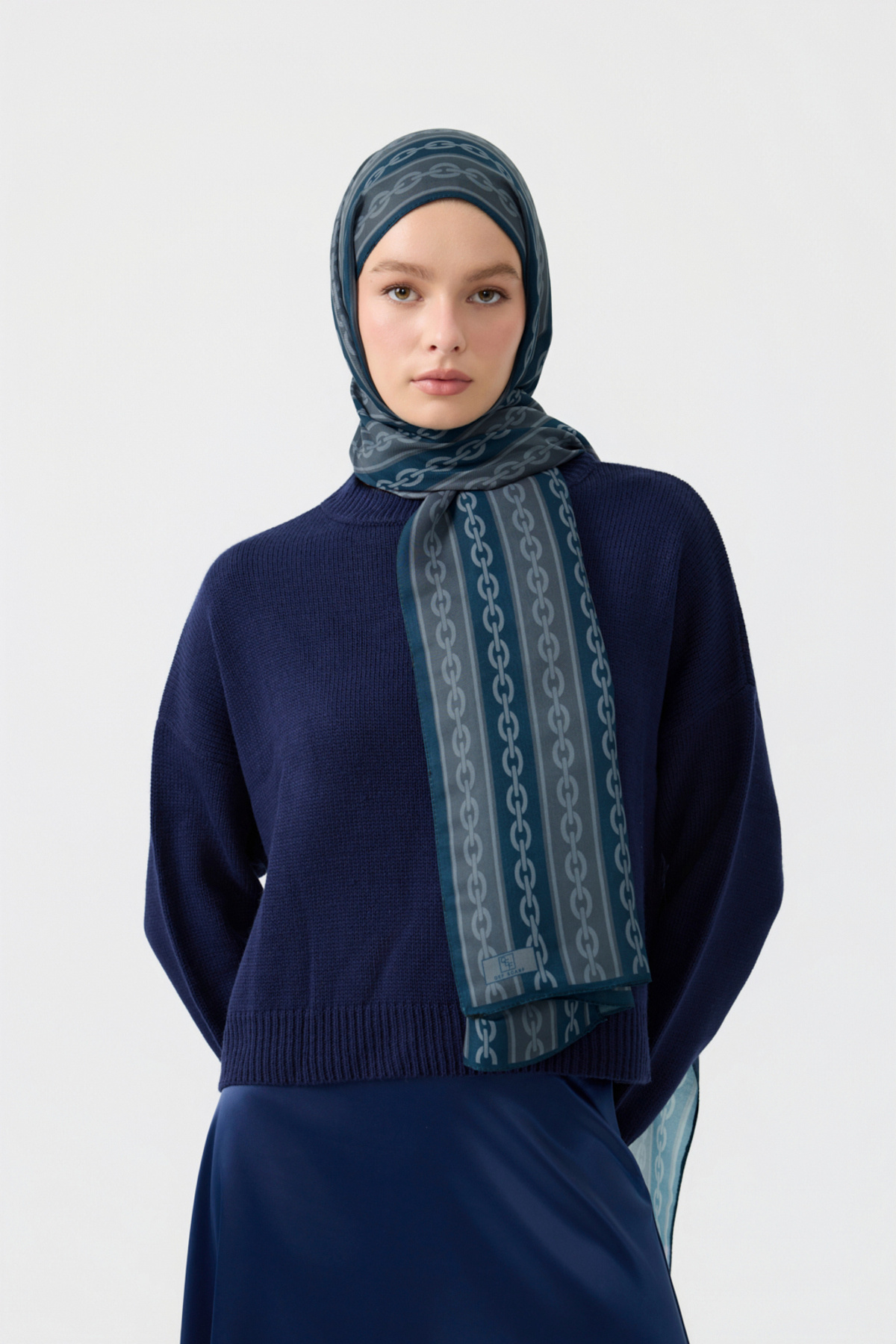 Cotton Twill Şal Chain İndigo Cotton Twill Şal Chain İndigo QF26KSAL002 70 x 185