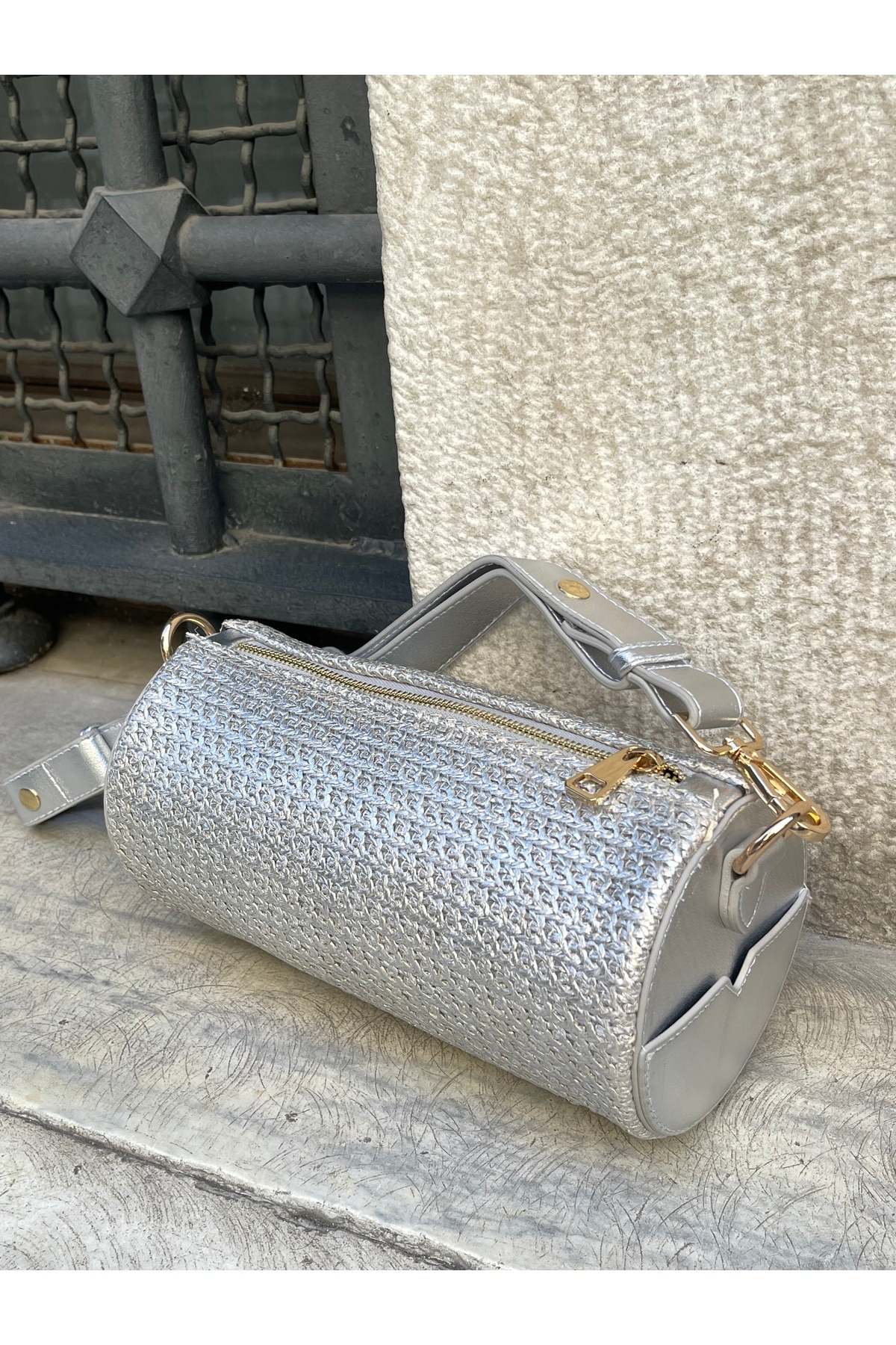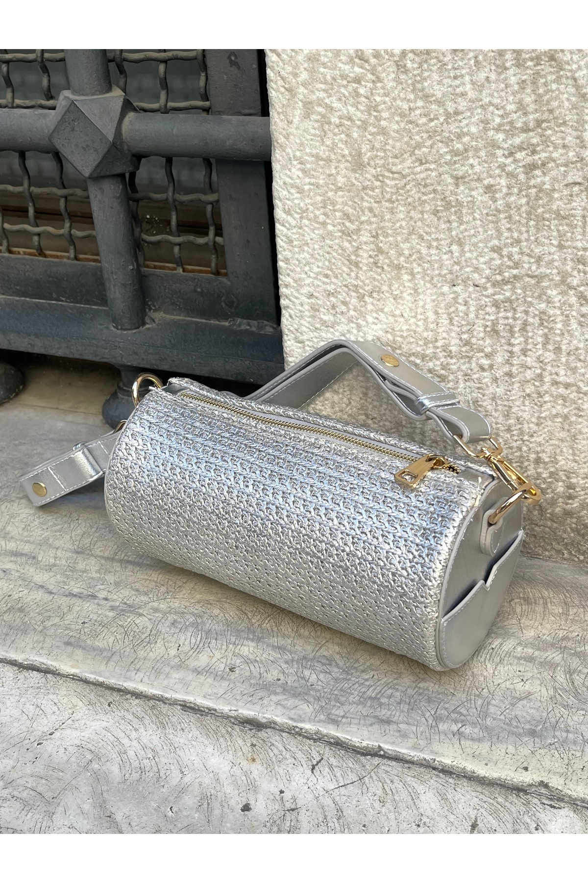 Gümüş Kadın Silindir Model El Ve Omuz Çantası Gümüş Kadın Silindir Model El Ve Omuz Çantası NA812 تک سایز