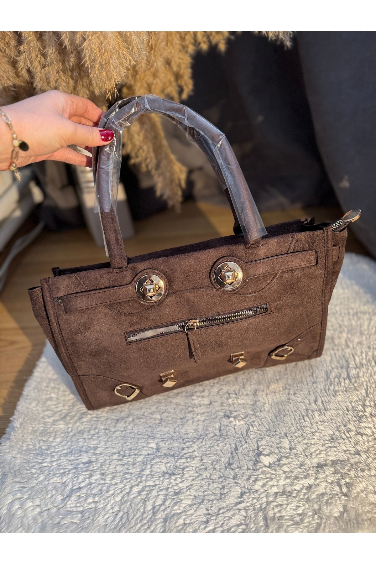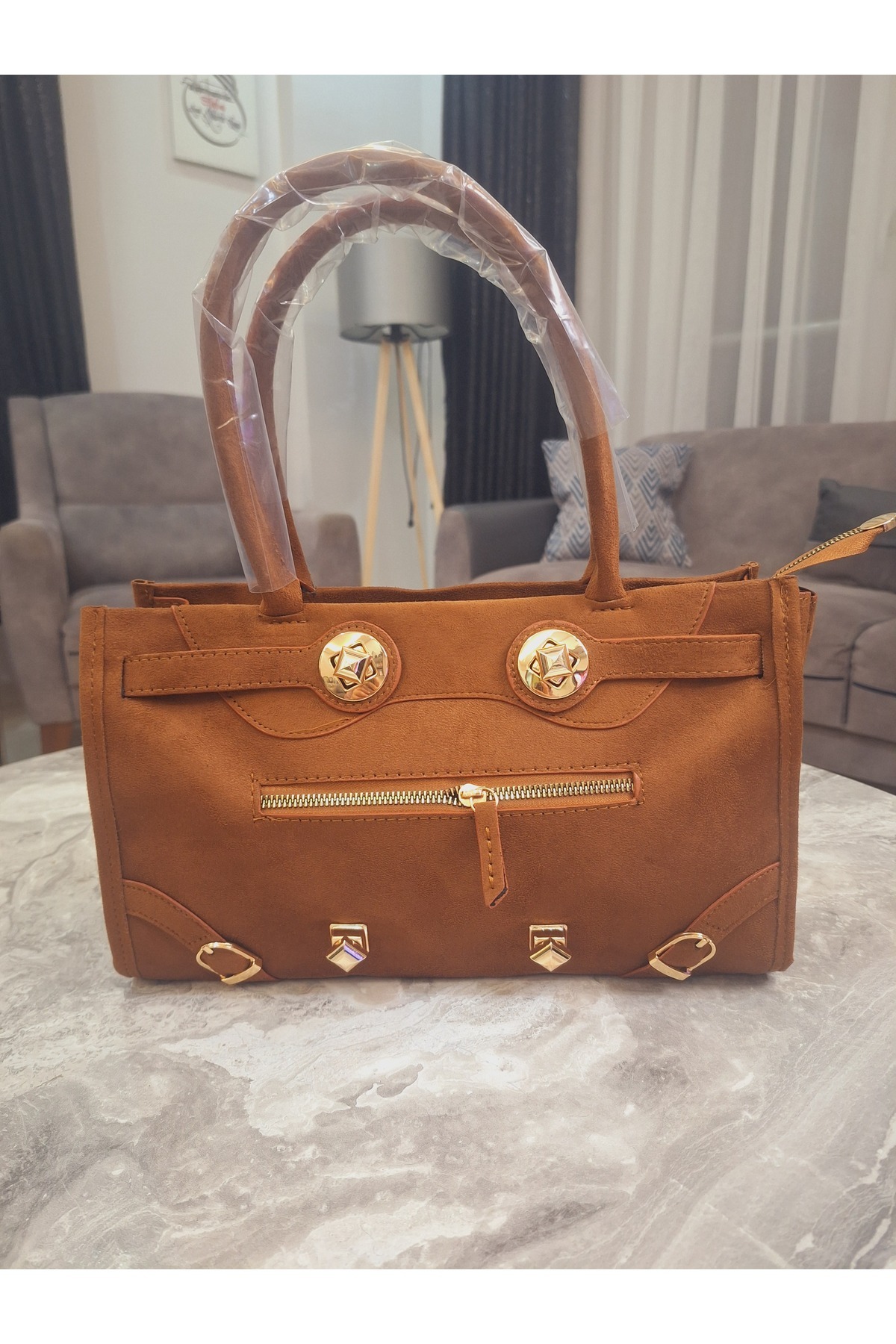 Süet Dokulu Gold Aksesuarlı Taba Kadın Omuz Çantası Süet Dokulu Gold Aksesuarlı Taba Kadın Omuz Çantası 1415 Standart