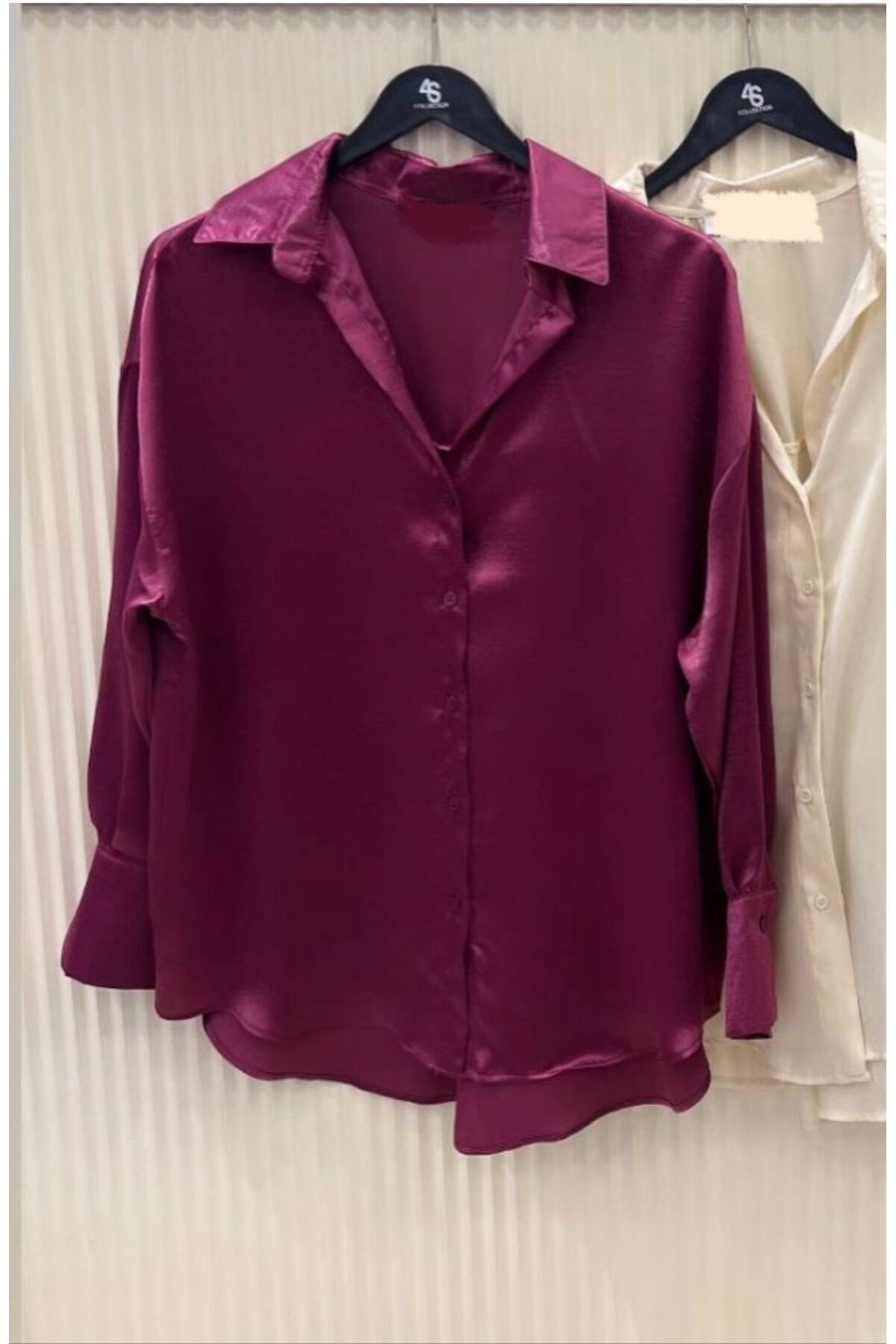 Kadın Bordo Hafif Dökümlü Saten Yüzeyli Gömlek Kadın Bordo Hafif Dökümlü Saten Yüzeyli Gömlek UMM1037 XL