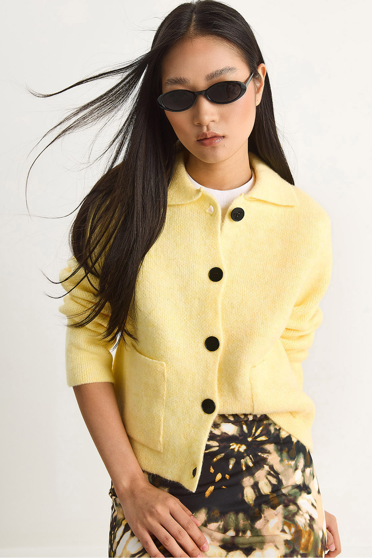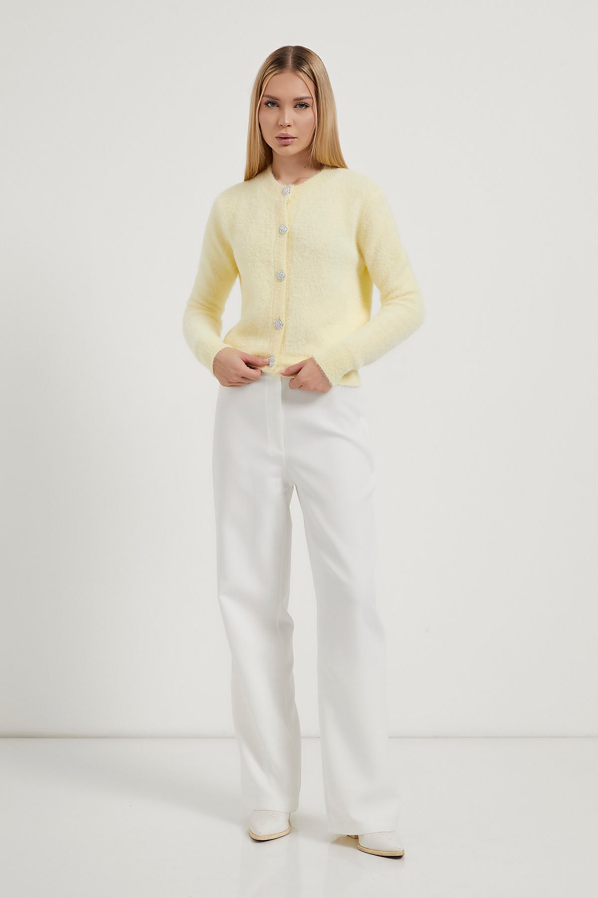 Kadın Mücevher Düğmeli Yumuşak Sarı Triko Hırka Kadın Mücevher Düğmeli Yumuşak Sarı Triko Hırka 476-5KB1188HRK Standart