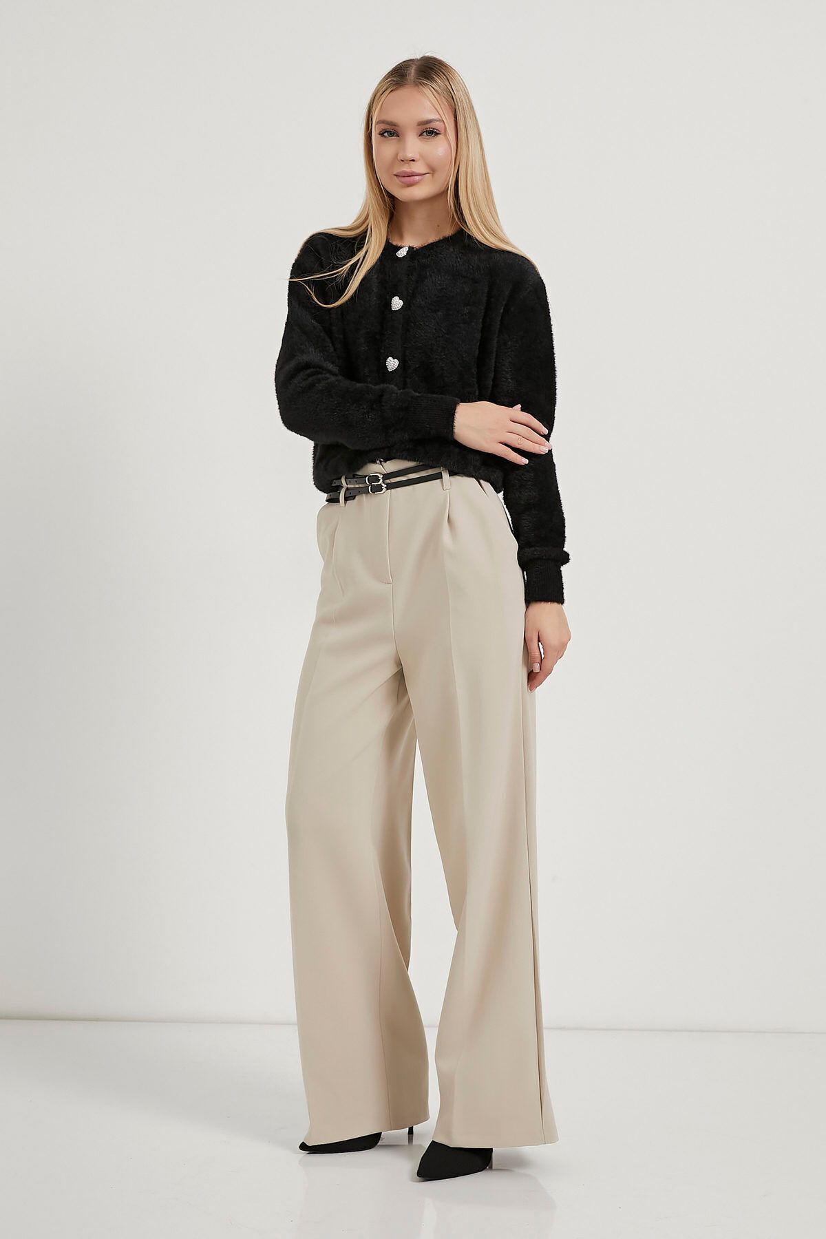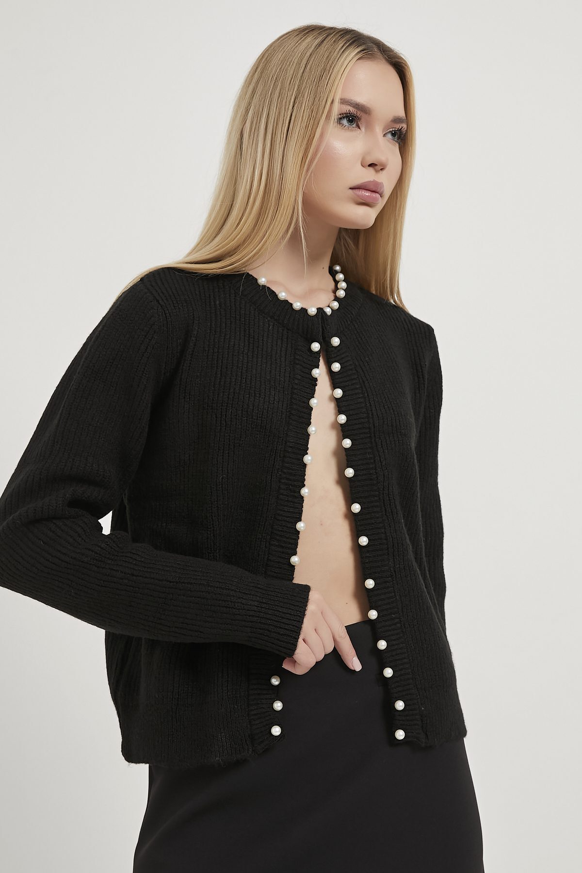 Kadın Mücevher Düğmeli Yumuşak Siyah Triko Hırka Kadın Mücevher Düğmeli Yumuşak Siyah Triko Hırka 476-5KB1188HRK Standart