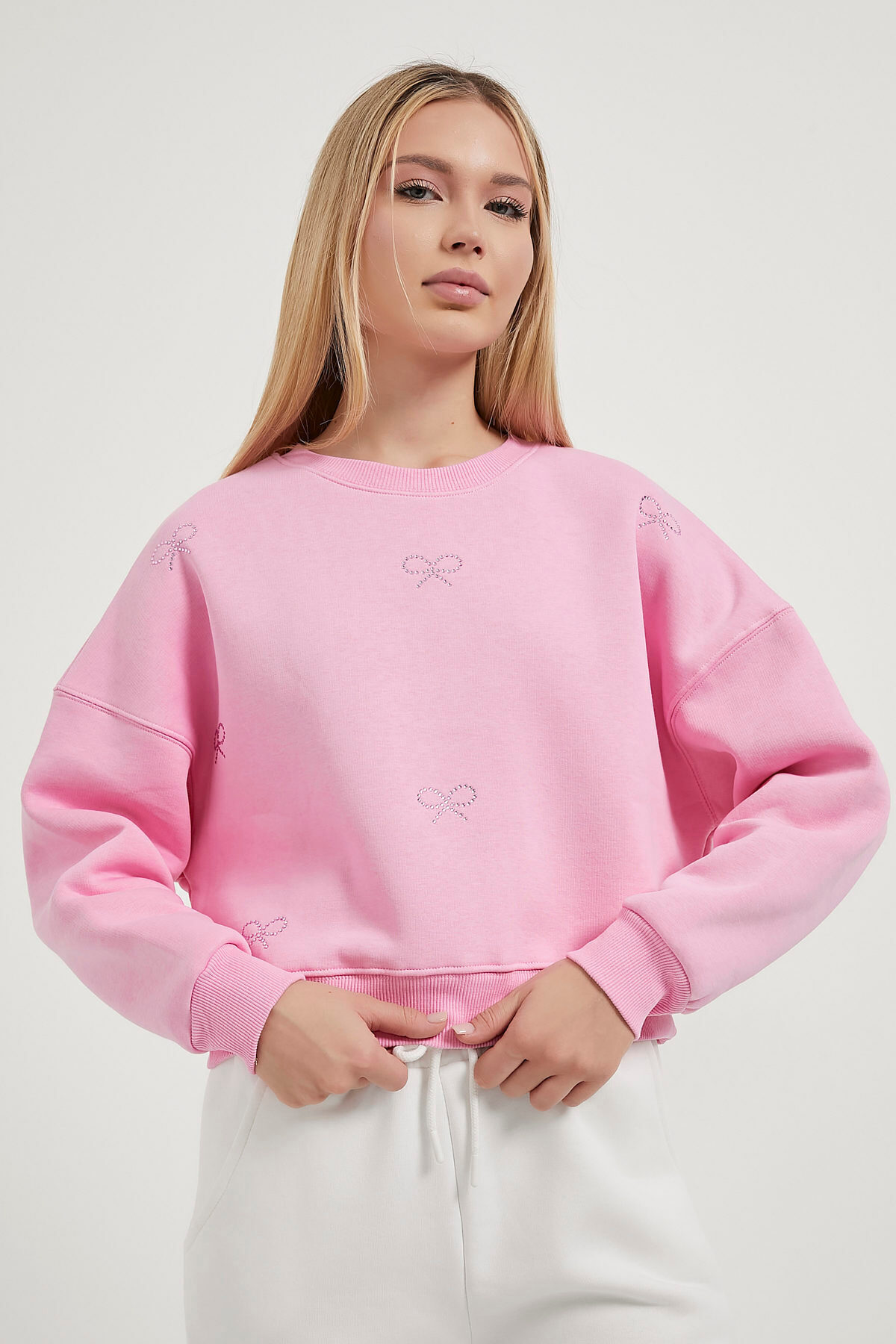 Kadın Taşlı Desenli Bisiklet Yaka Pembe Sweatshirt Kadın Taşlı Desenli Bisiklet Yaka Pembe Sweatshirt 606-5KB4011SWT XL