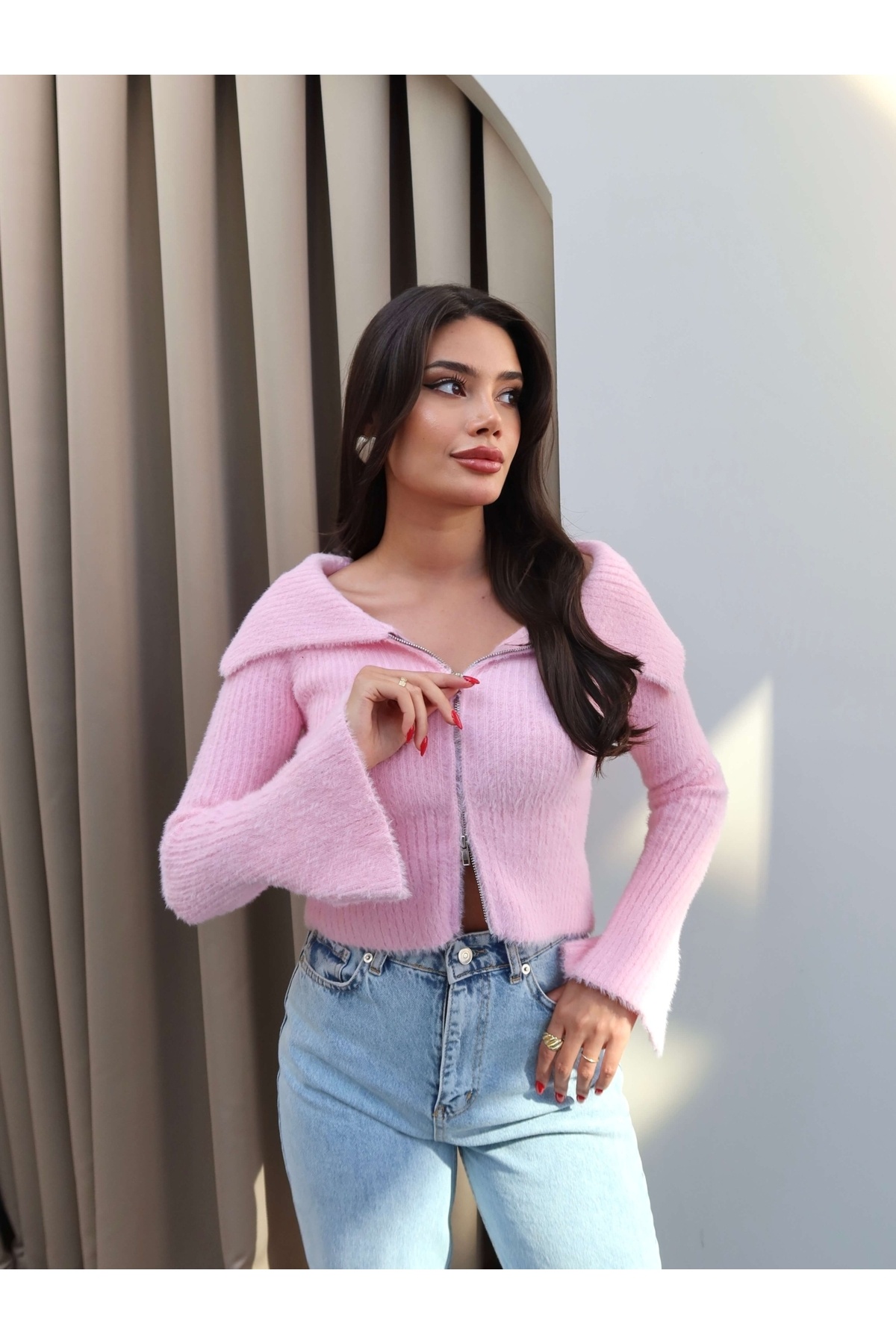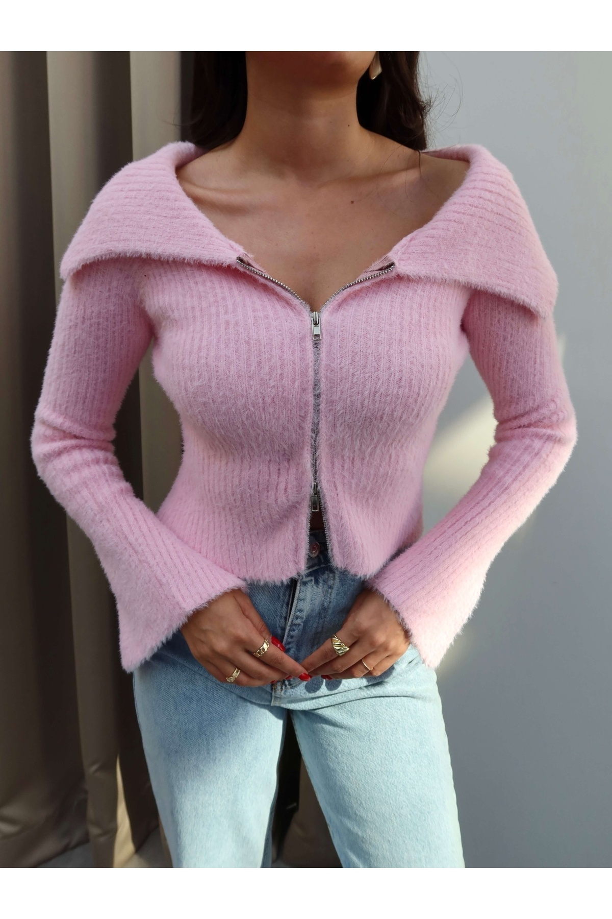 Fermuarlı Dik Yaka Triko Hırka Fermuarlı Dik Yaka Triko Hırka EH-5938 تک سایز