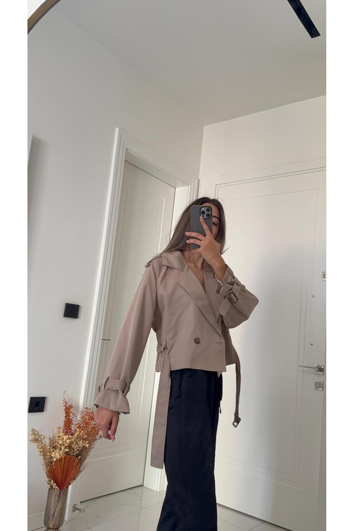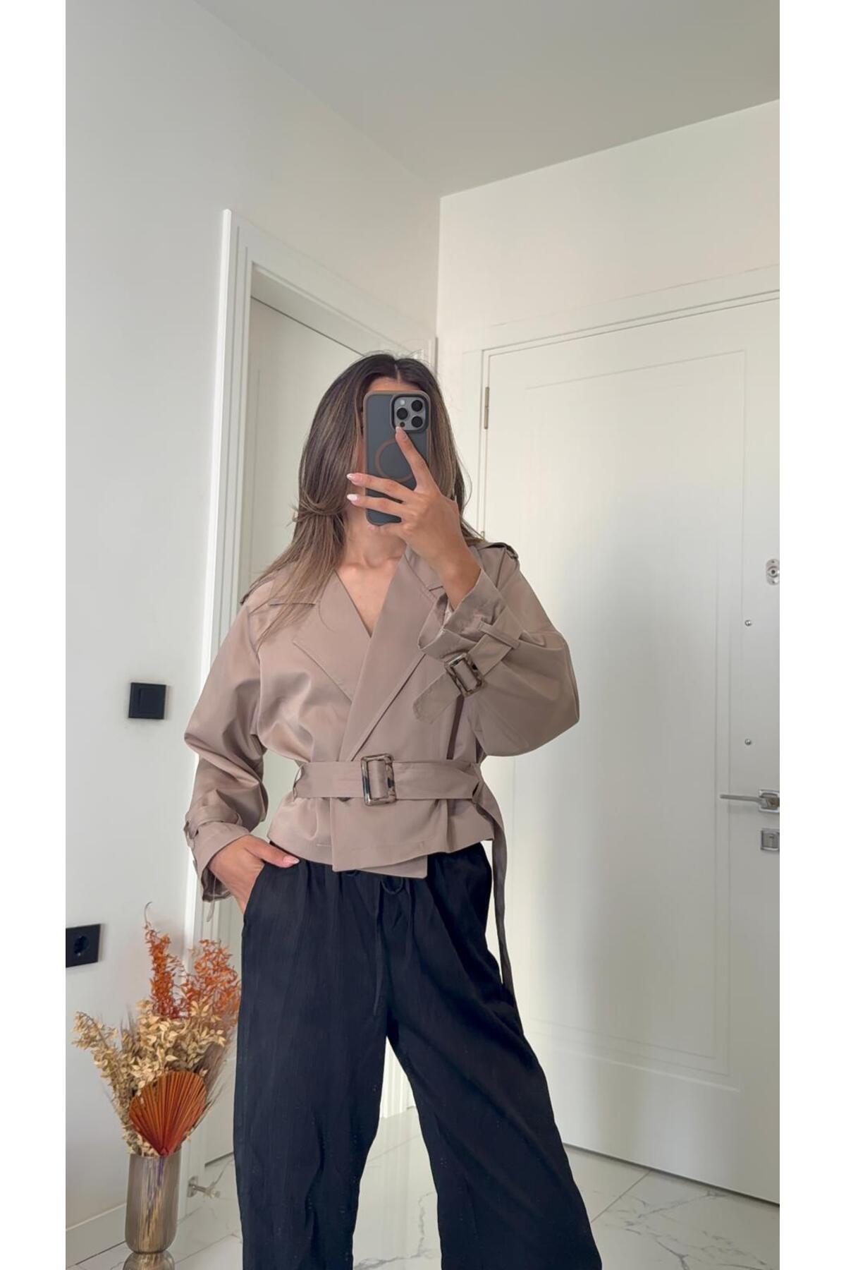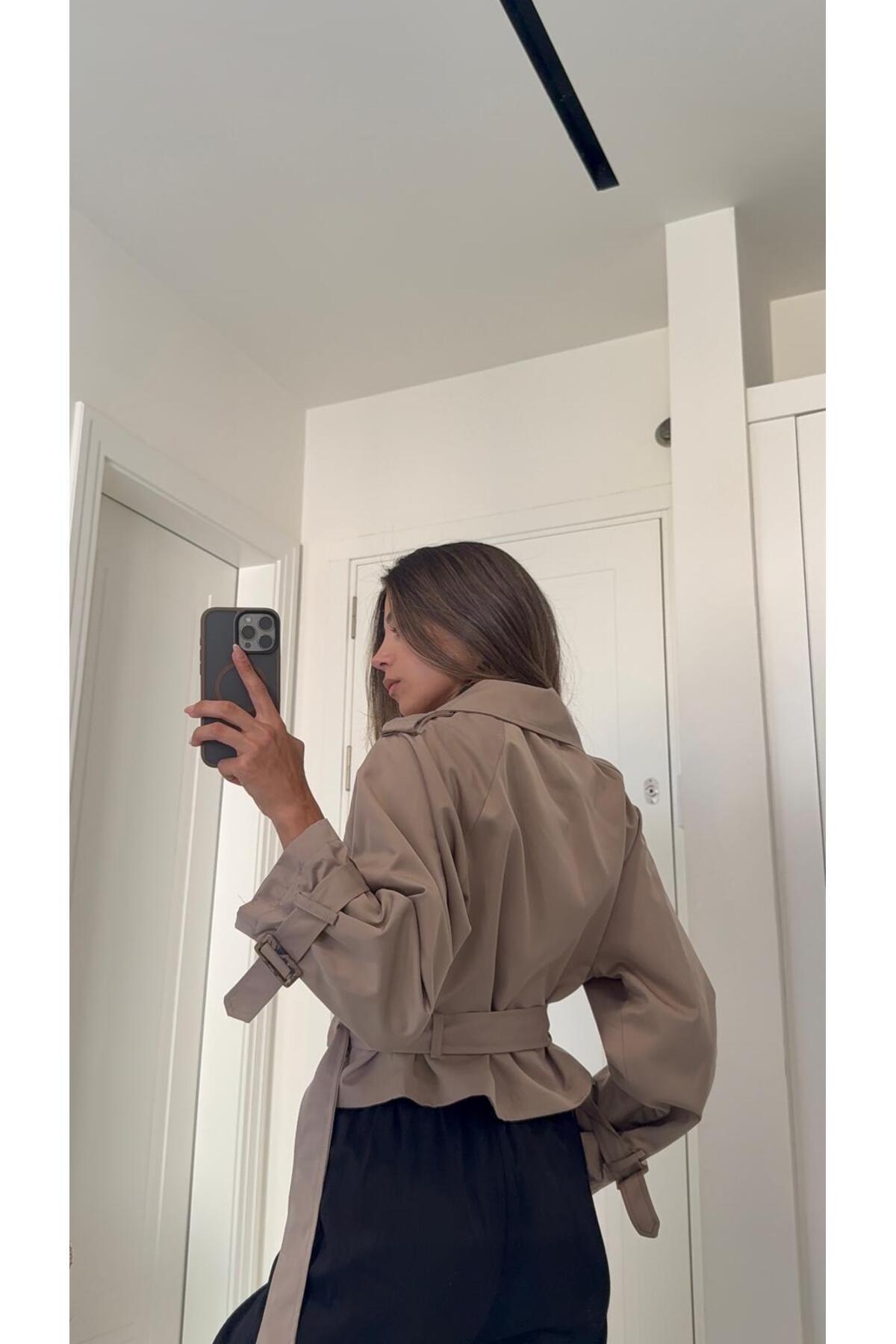 Vizon Renk Kuşaklı Kısa Trençkot Vizon Renk Kuşaklı Kısa Trençkot VZTRKT01 L