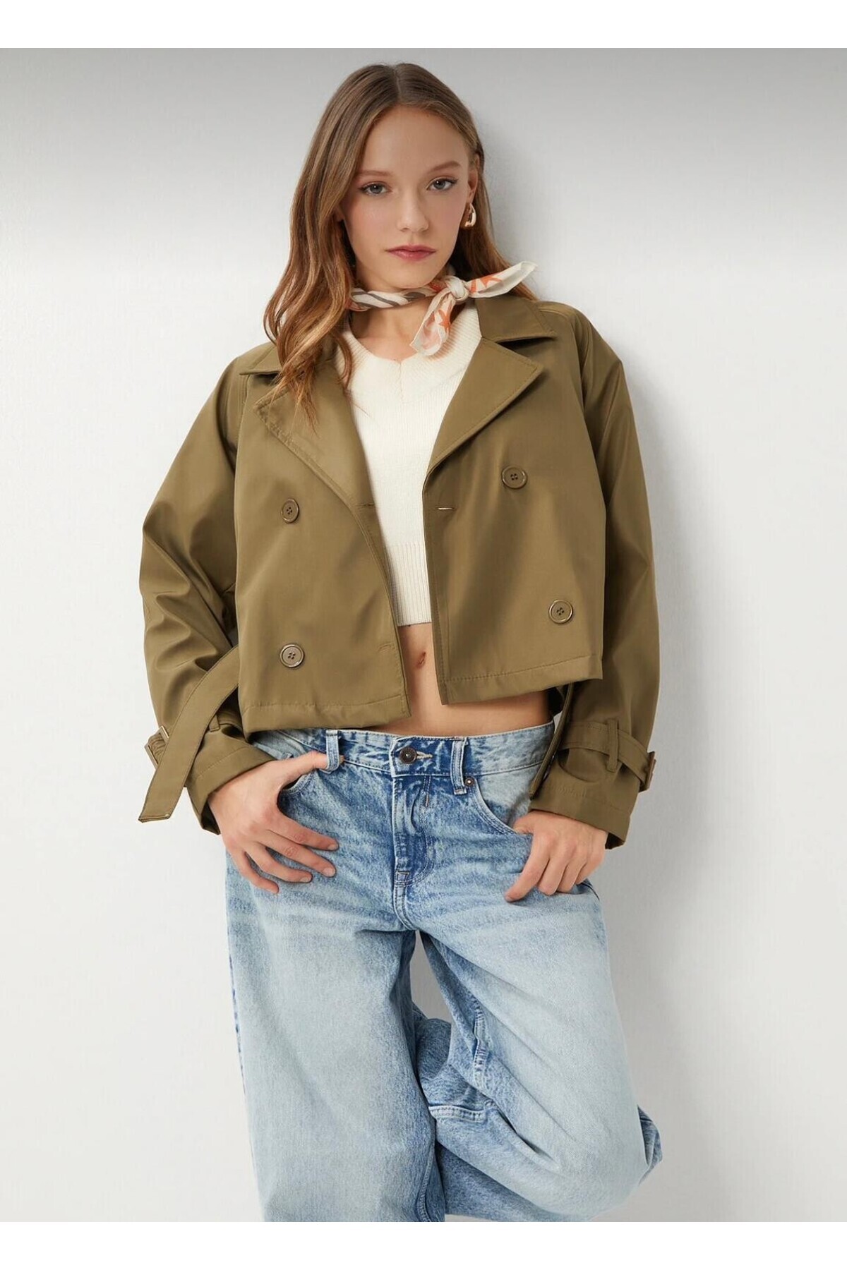 Haki Renk Kuşaklı Kısa Trençkot Haki Renk Kuşaklı Kısa Trençkot HKTRKT01 XL