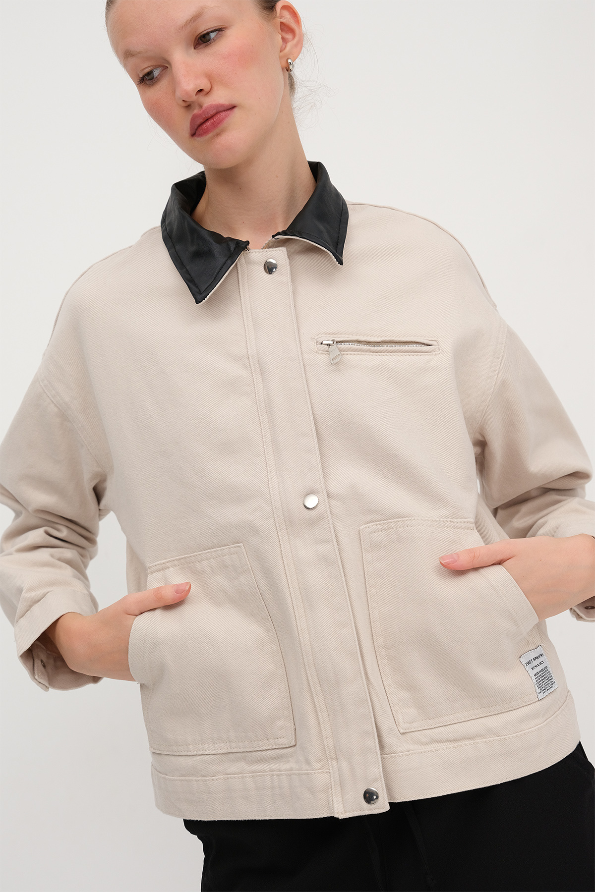Deri Yaka Fermuarlı Ceket C2463 Deri Yaka Fermuarlı Ceket C2463 ADX-00035835 L