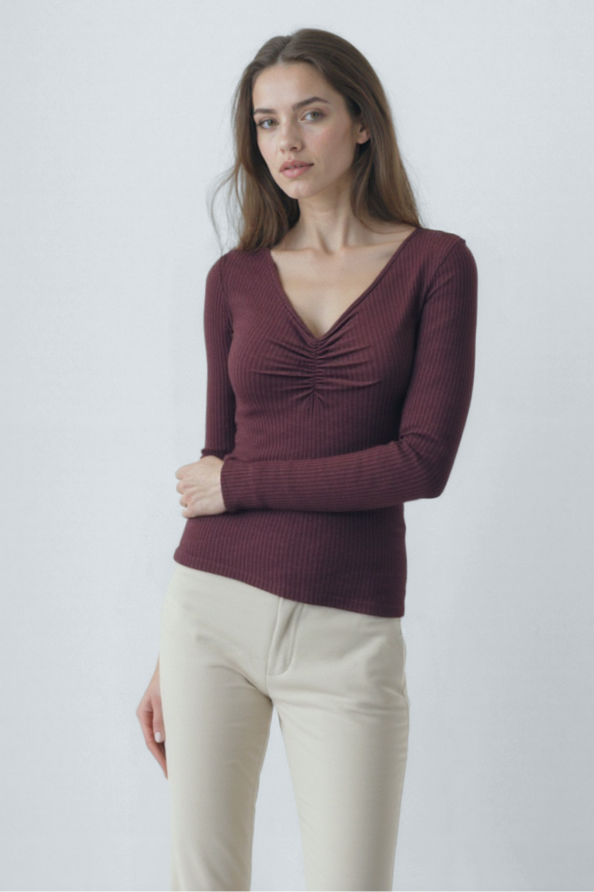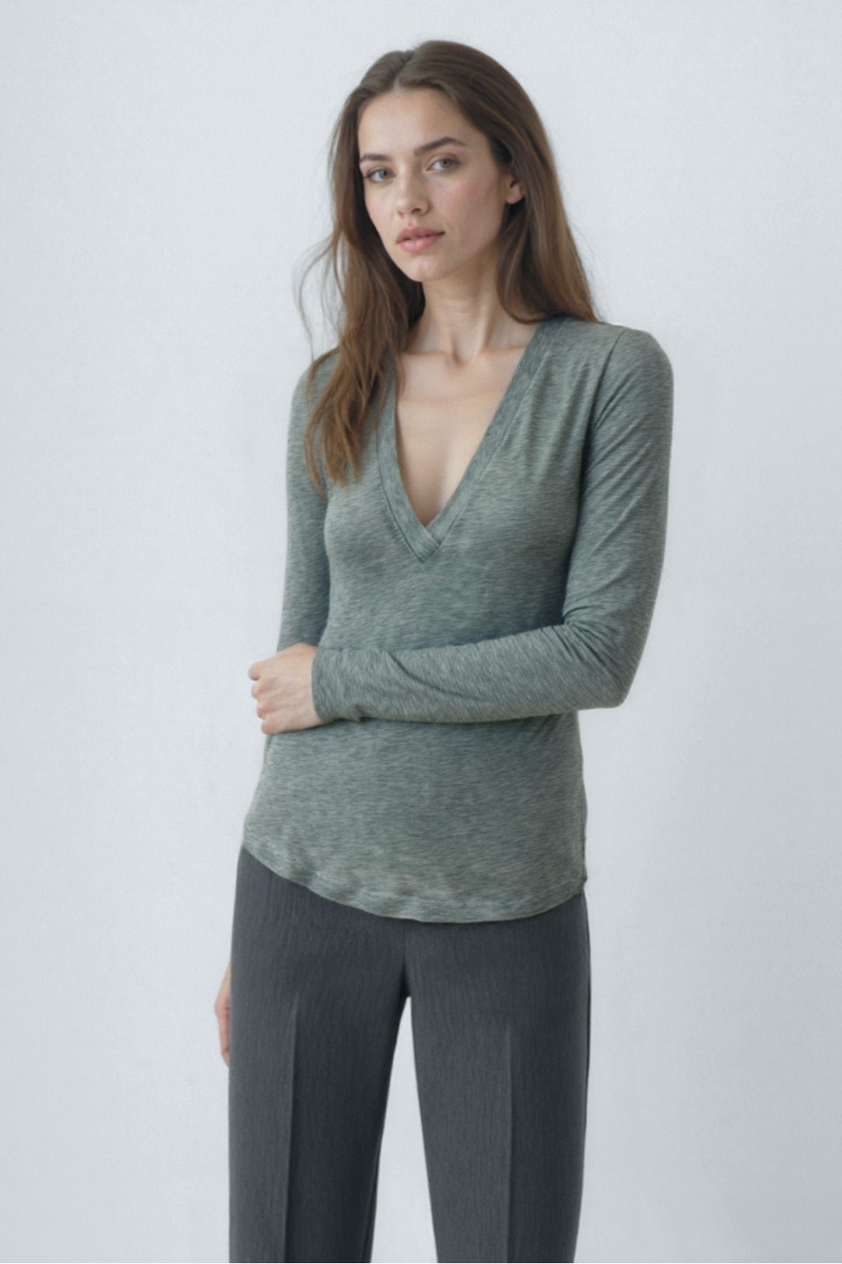 Gri Melanj V Yaka Uzun Kollu Kadın Bluz VIOLA Gri Melanj V Yaka Uzun Kollu Kadın Bluz VIOLA WWTP16X XL