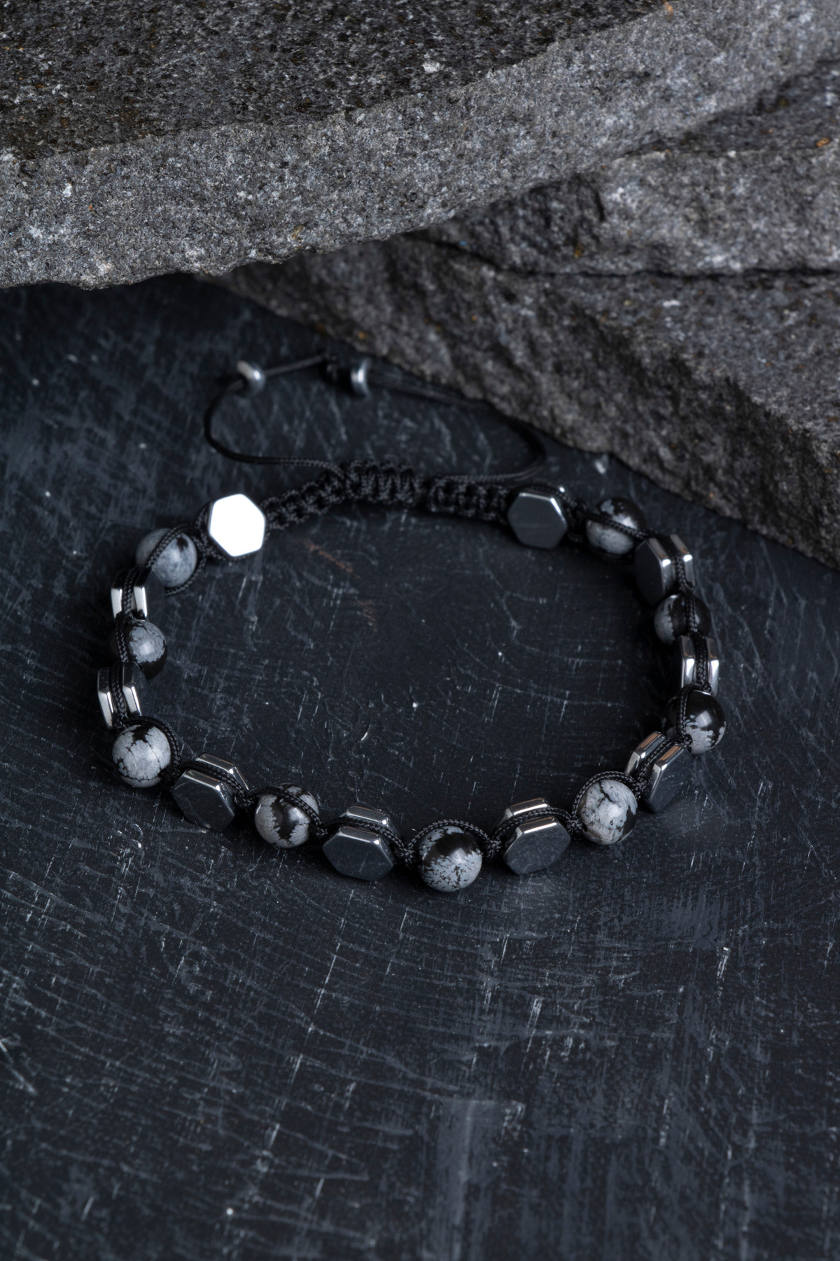 Orijinal & Sertifikalı Doğal Taş Erkek Karlı Obsidyen Hematit Kutulu El Yapımı Makrome Bileklik Orijinal & Sertifikalı Doğal Taş Erkek Karlı Obsidyen Hematit Kutulu El Yapımı Makrome Bileklik osm-8683817061420 Standart