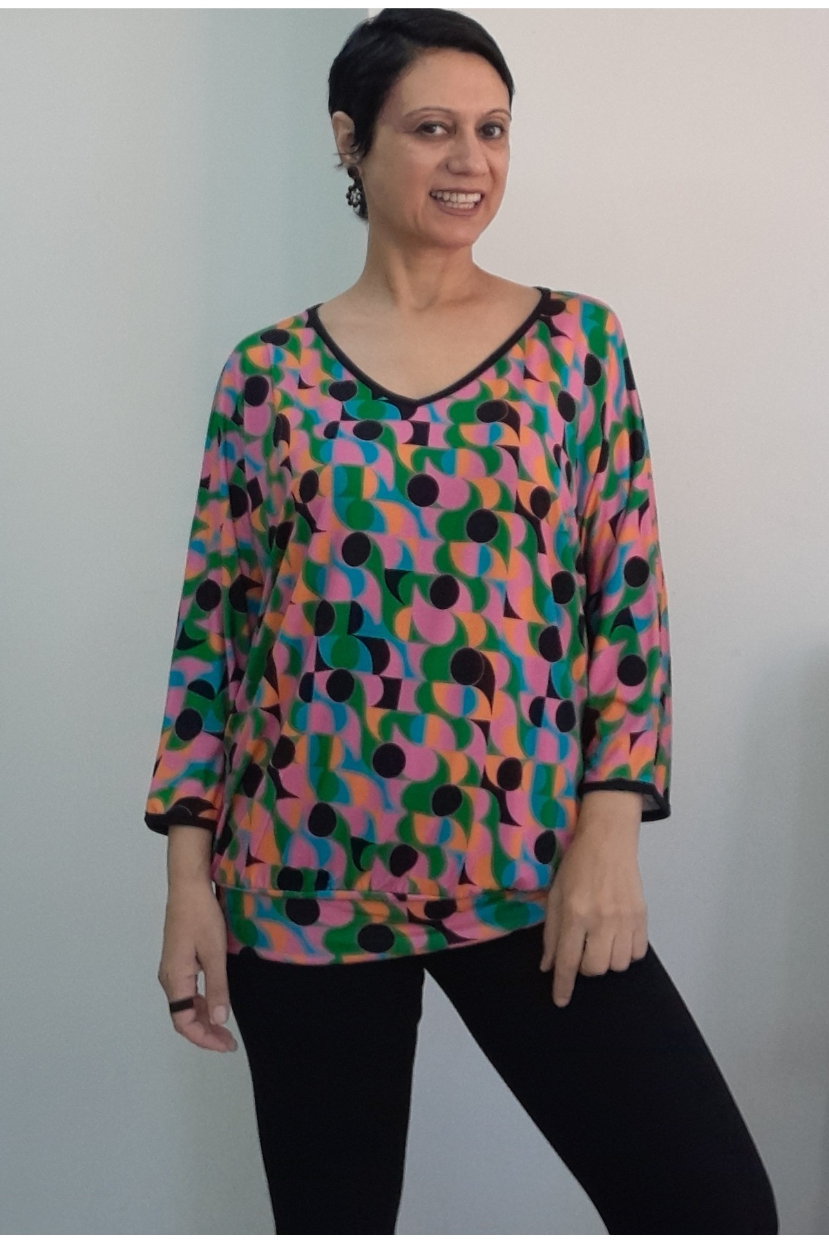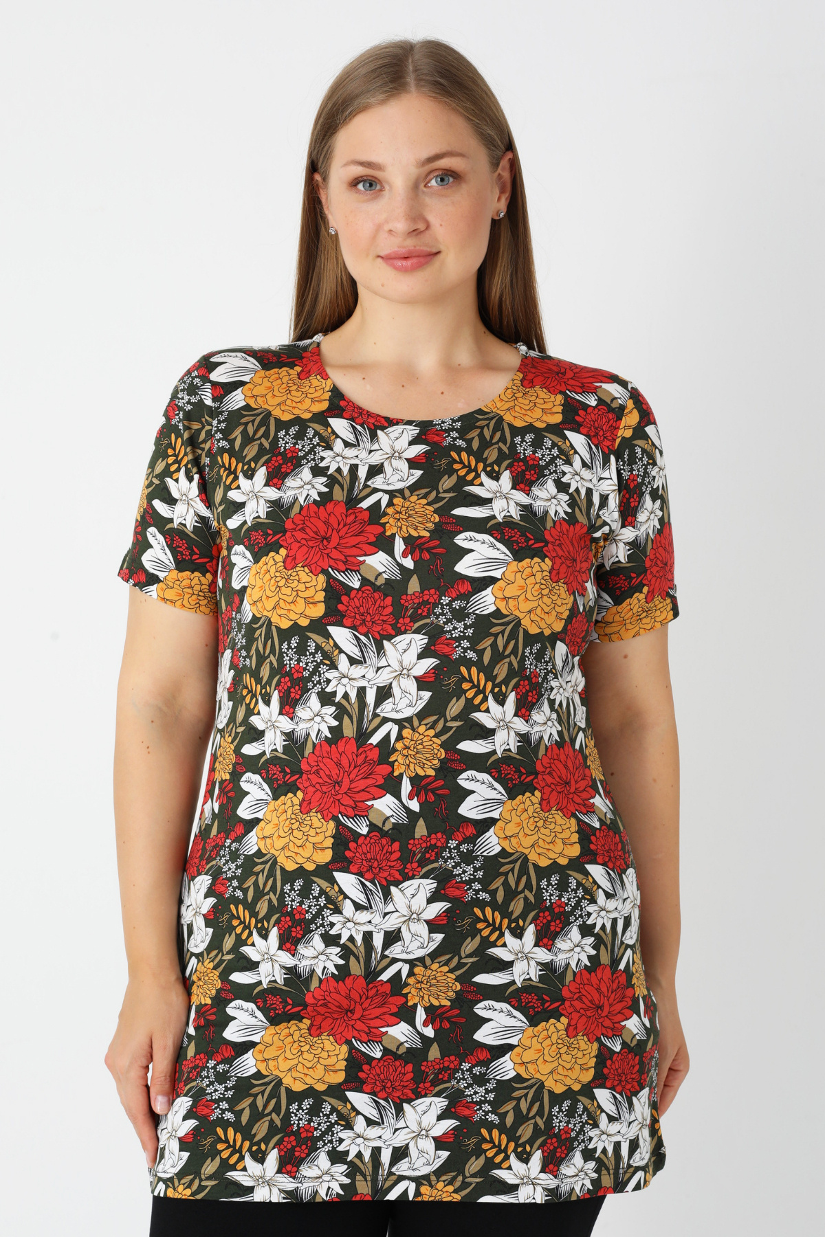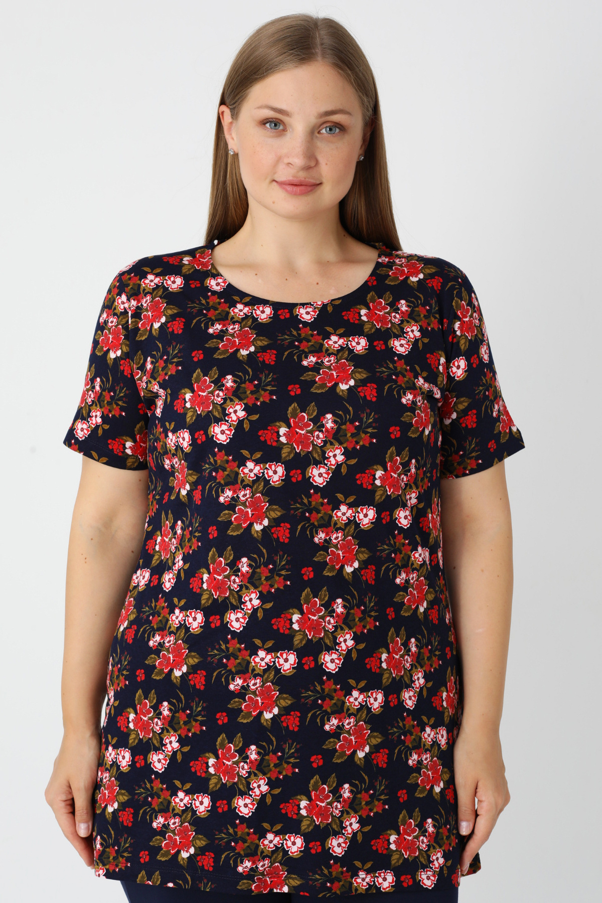 Siyah Desenli Kısa Kollu Pamuklu Kadın Büyük Beden T-Shirt Siyah Desenli Kısa Kollu Pamuklu Kadın Büyük Beden T-Shirt 26112 4XL