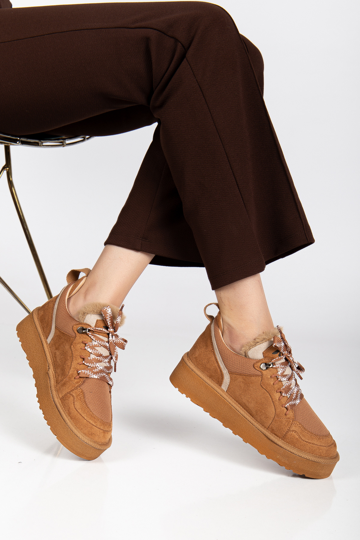 Kadın Kalın Taban Bağcıklı Günlük Sneaker Ayakkabı Remi Taba Süet Kadın Kalın Taban Bağcıklı Günlük Sneaker Ayakkabı Remi Taba Süet 350270 40