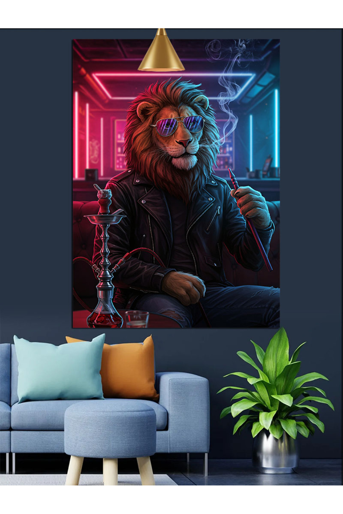 Neon Aslan Ve Nargile Dekoratif Kanvas - Mdf Ahşap Tablo Neon Aslan Ve Nargile Dekoratif Kanvas - Mdf Ahşap Tablo DKEEY142907 100 x 140