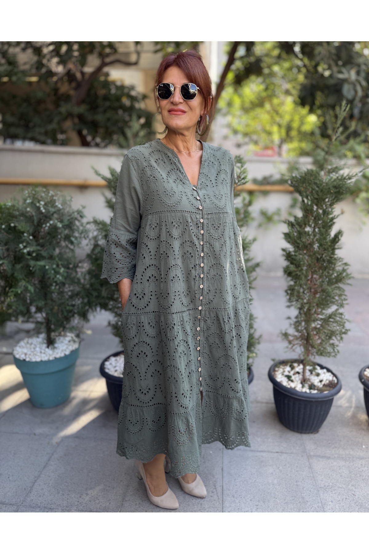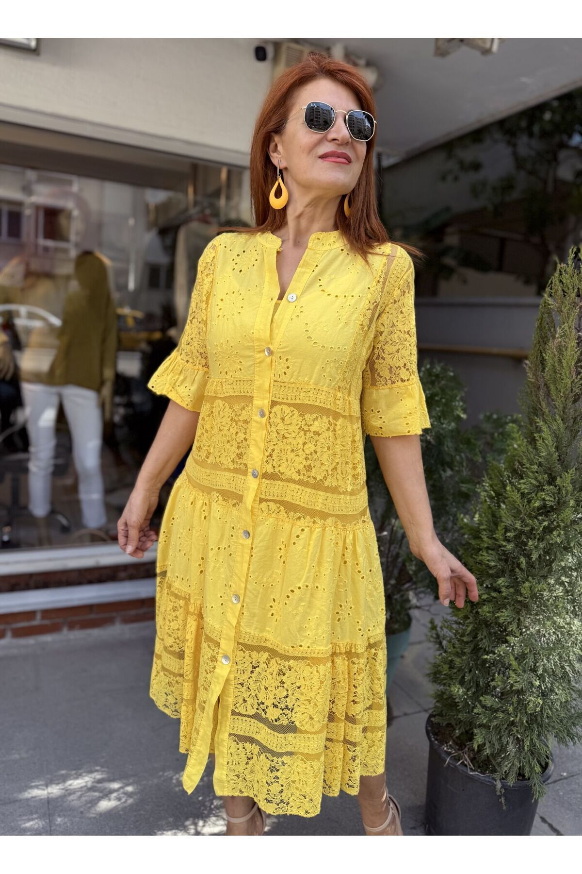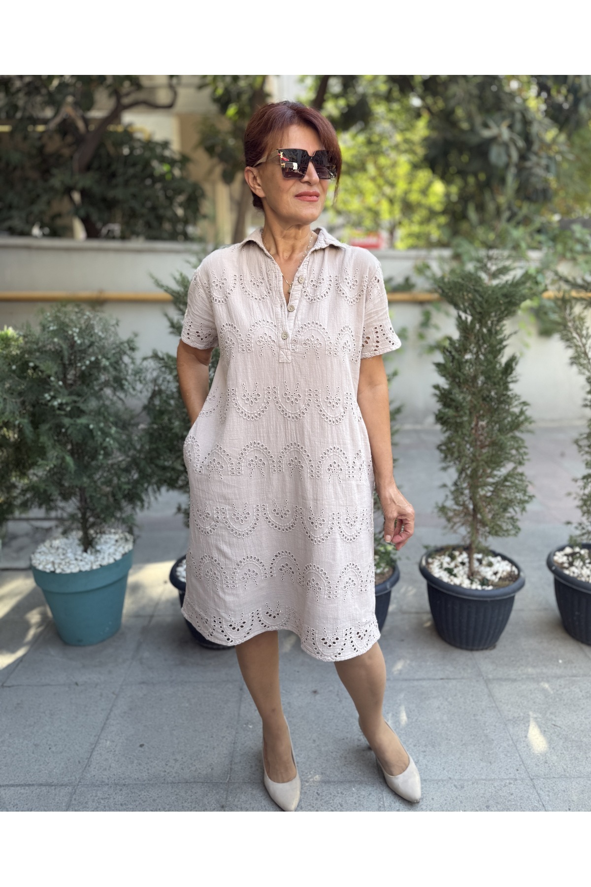 Tüm Düğme Brode Elbise Beyaz Tüm Düğme Brode Elbise Beyaz MLTDRY 46-48