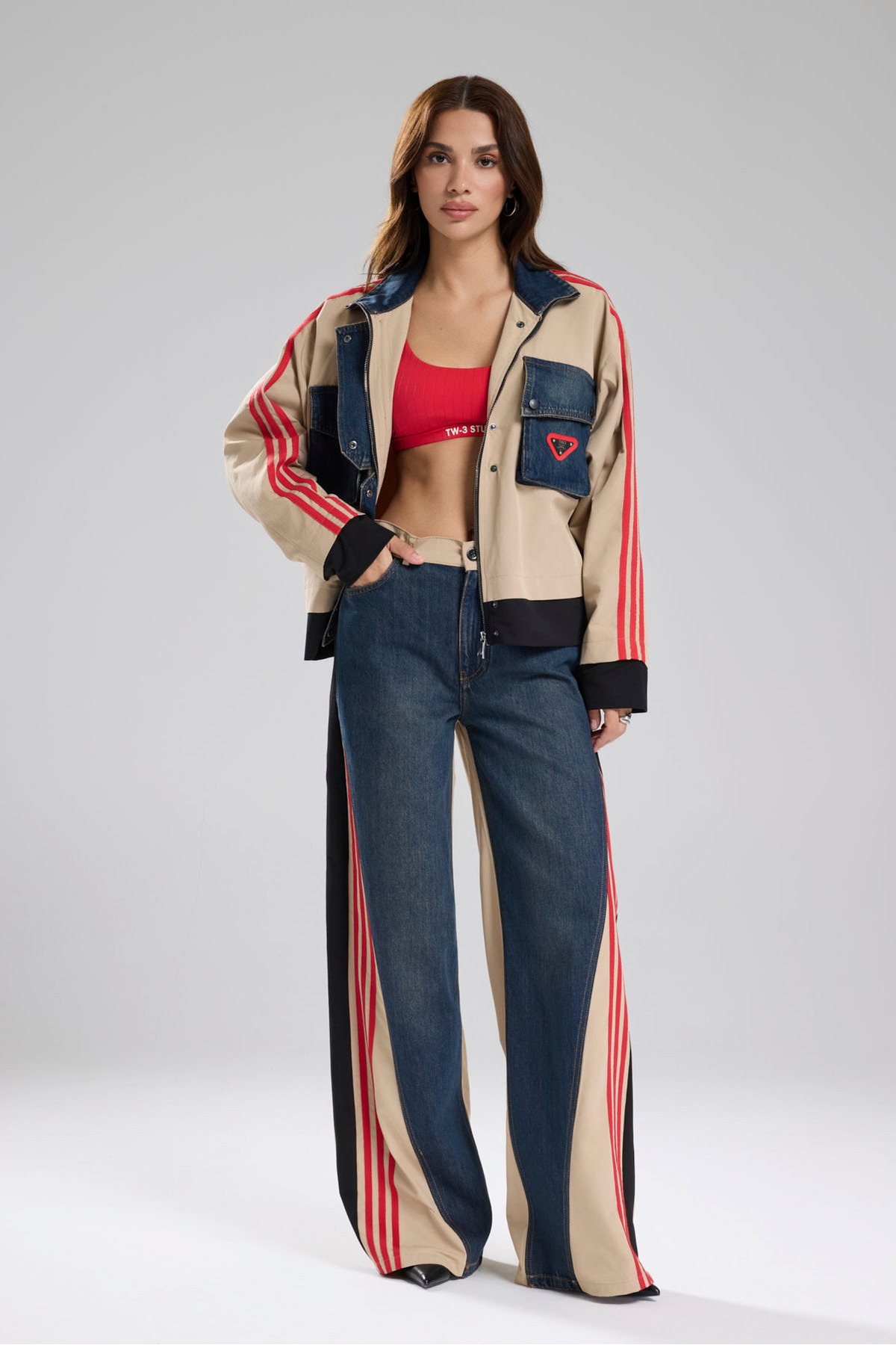 Kadın Şerit Detaylı Denim Garnili Tasarım Ceket Kadın Şerit Detaylı Denim Garnili Tasarım Ceket TW3-1726 L