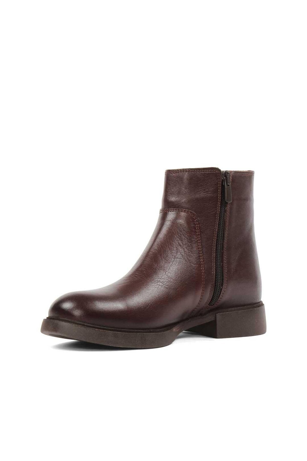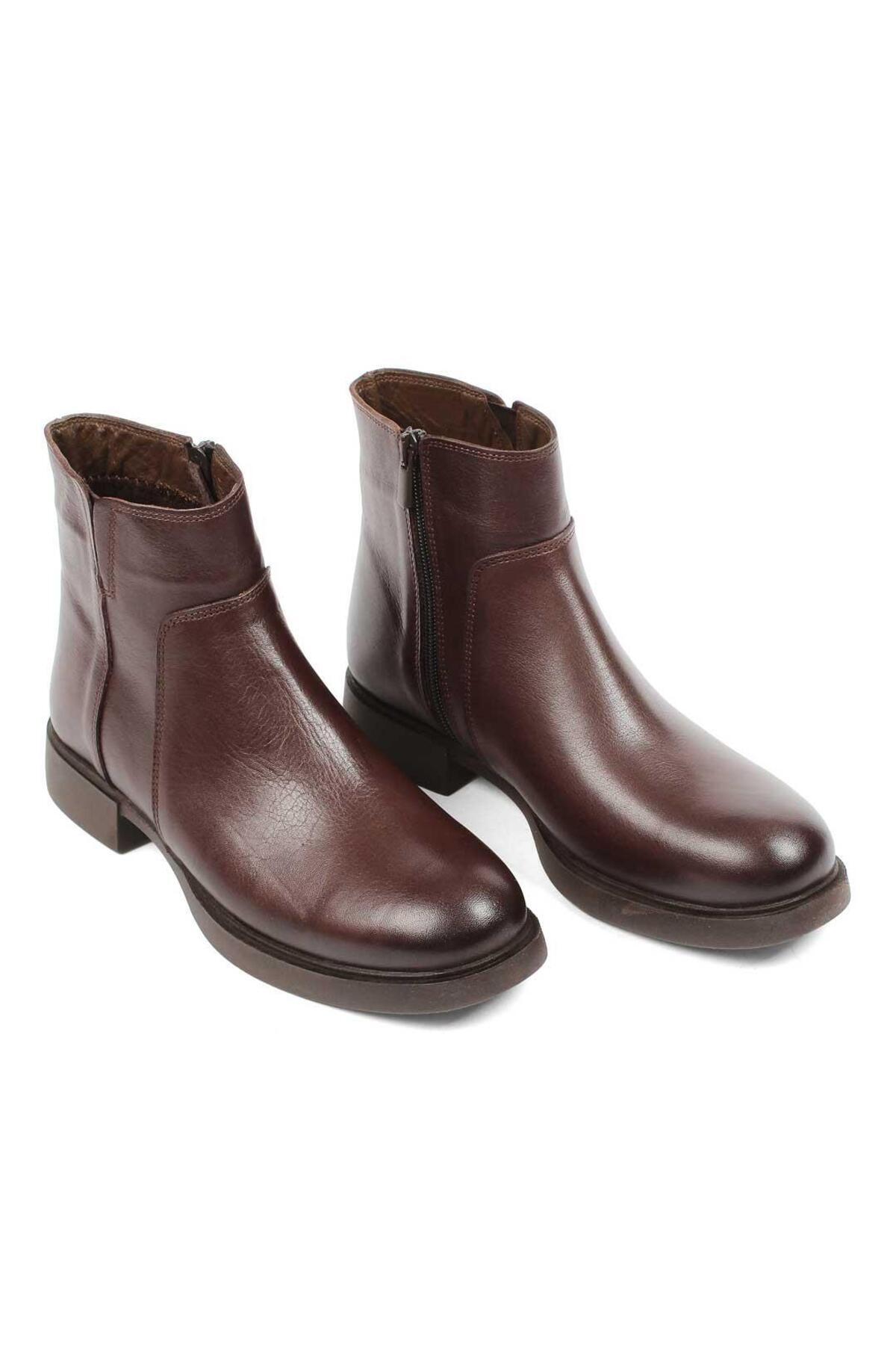 Kadın Kahverengi Fermuarlı Kalın Topuklu Deri Bot Kadın Kahverengi Fermuarlı Kalın Topuklu Deri Bot 727 28641-16512 40