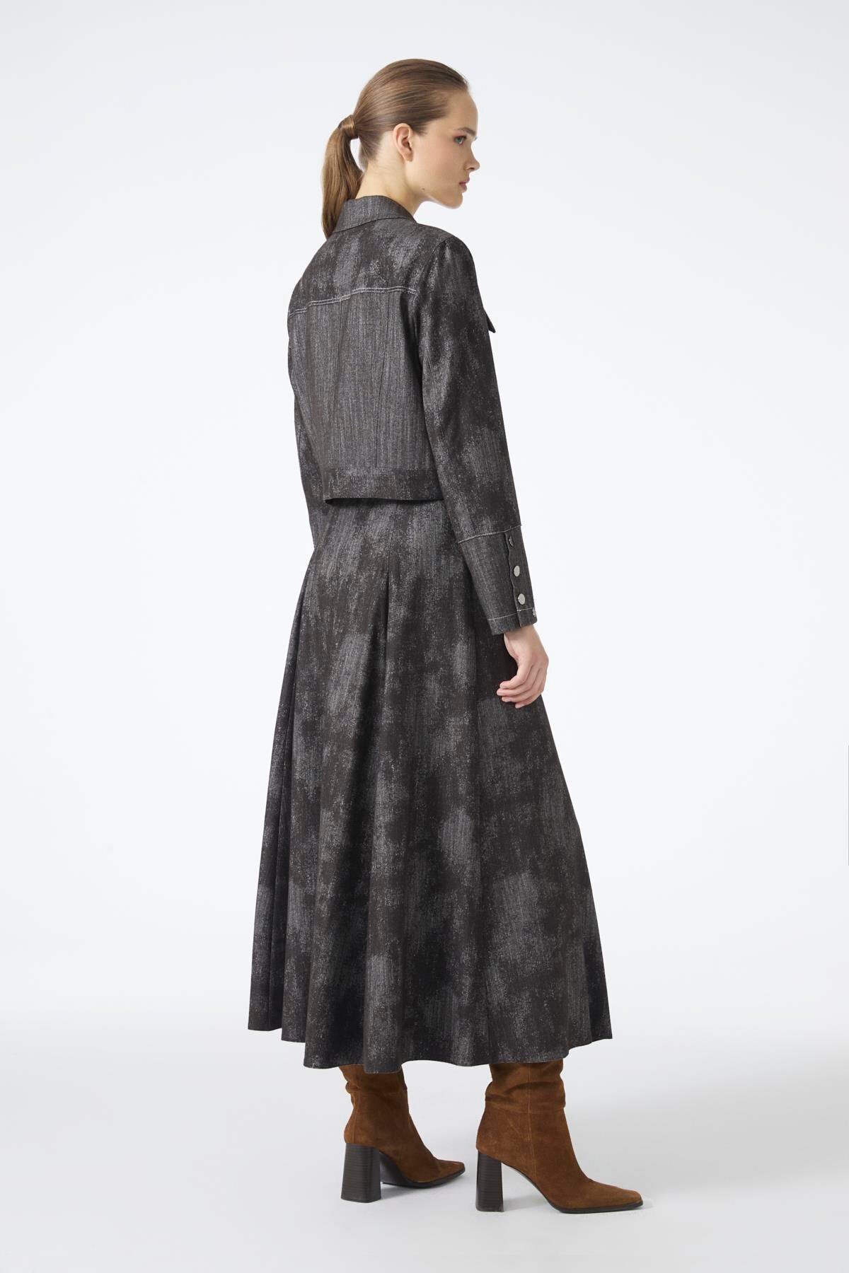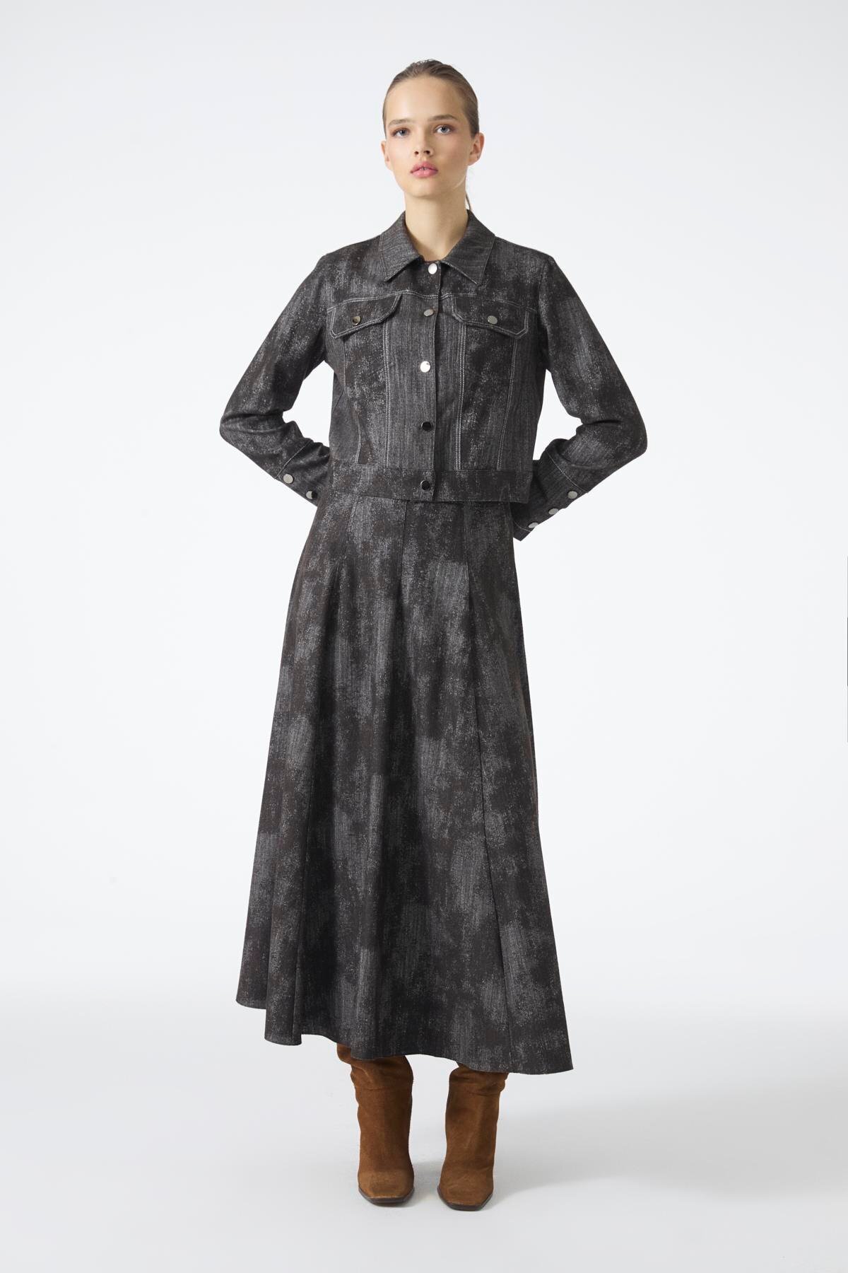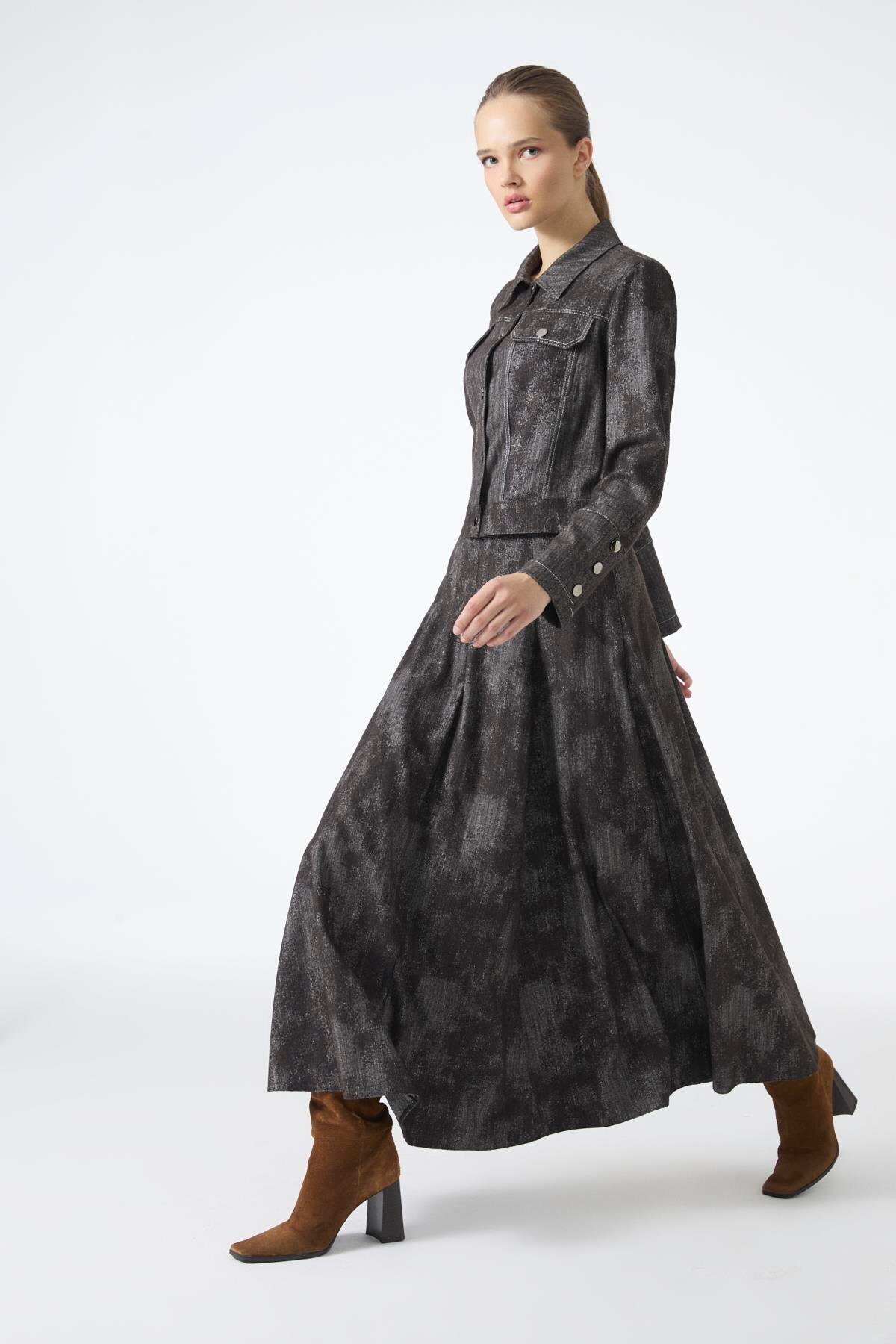 Gömlek Yaka Düğmeli Ceket Etek Kahve İkili Takım TK-1705 Gömlek Yaka Düğmeli Ceket Etek Kahve İkili Takım TK-1705 42
